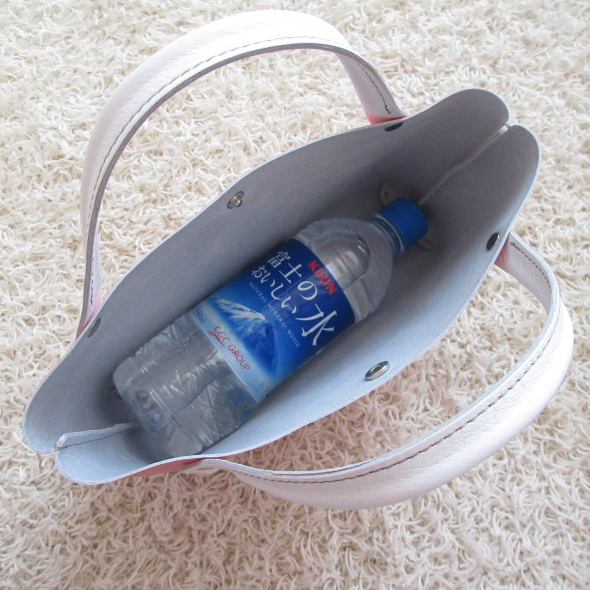 ●ハンドルをバッグ内に丸め入れて、底部分を少しつぶしての梱包となります。