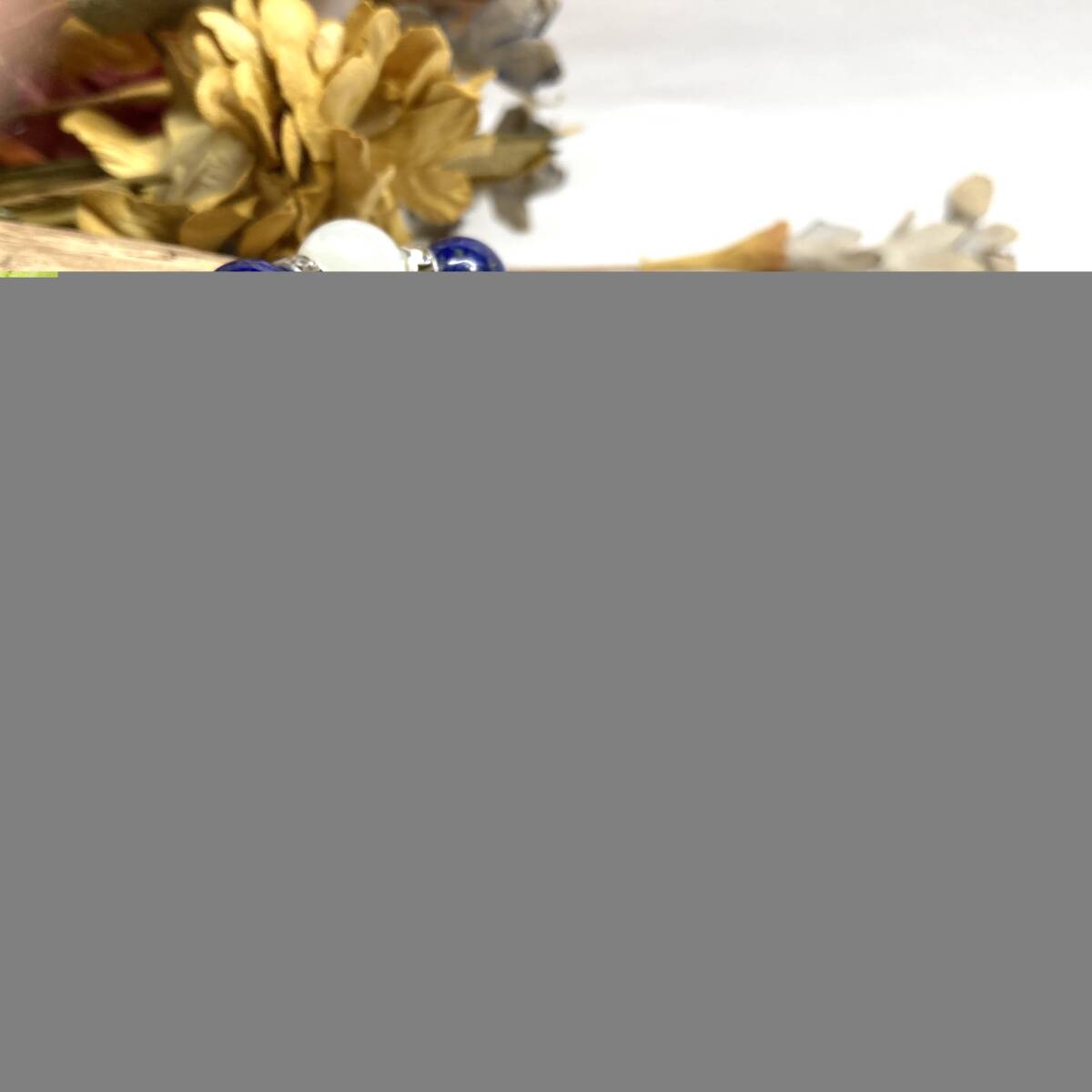こちらは、ラピスラズリとムーンストーンを組み合わせたパワーストーンブレスレットです。間にはロンデルを挟み高級感あるデザインに仕上げております。石大きさは腕にも馴染みやすいように10mm玉で内径約18cm(伸可能)です。(サイズ変更の場合は取引ナビにてご連絡をお願いします。) 数に限りがございますので気になる方はお早めにどうぞ。