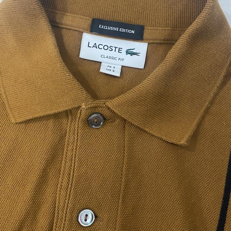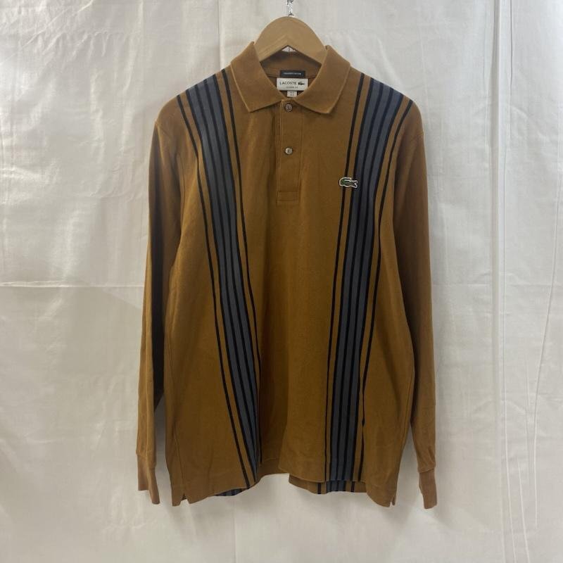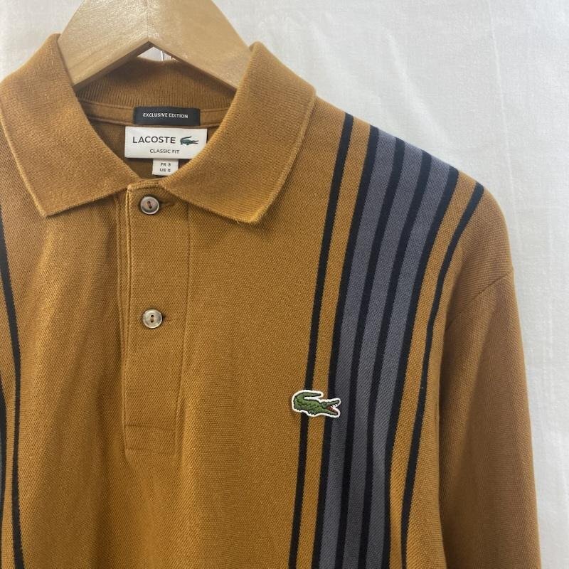 ラコステ 長袖ポロシャツ ポイントストライプ classic fit ブラウン×グレー US:S 3
