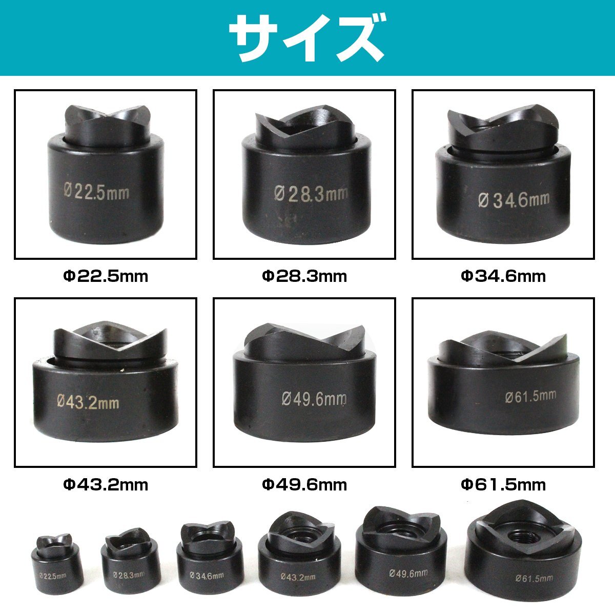 ノックアウトパンチ 油圧式パンチャー ダイスセット 6個 収納ケース付 油圧パンチ