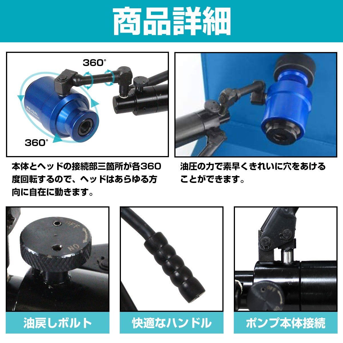 商 品 説 明●油圧の力で素早く楽にかつきれいに穴をあけることができます。