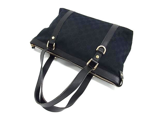 1円 GUCCI グッチ 141470 02026 アビー GG柄 GGキャンバス×レザー ハンドバッグ トートバッグ 肩掛け レディース ブラック系 DB2973