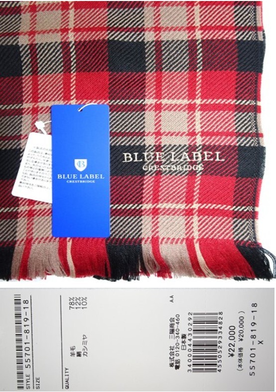 ブルーレーベル  クレストブリッジ  カシミヤ・シルク混  チェック柄  マフラー  定価22000円