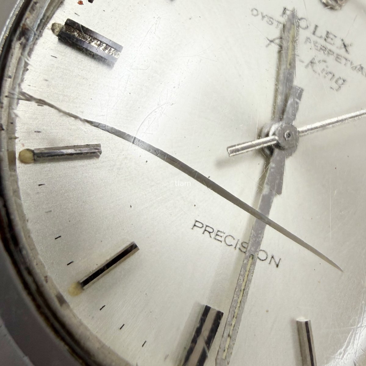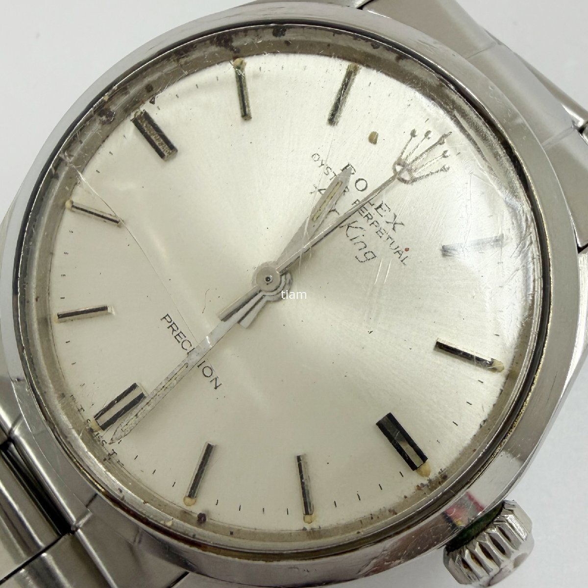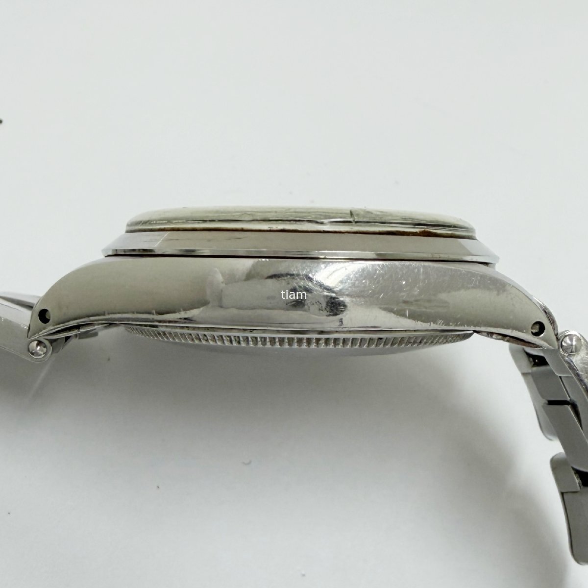 ガラス: 傷があり、ヒビがございます。 ダイヤル/針: ダイヤルにヤケ、汚れがあり針に劣化がございます。 ケース/ベゼル: 小傷が多数ございます。 ブレス: 小傷がありヨレが強くございます。 その他: 巻き上げがやや重いです。 | ||