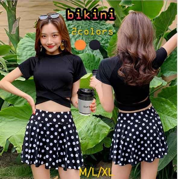 鮮やかなドット柄が視線を分散させ全体的にスッキリ見え◎年齢問わず幅広く使える水着です。