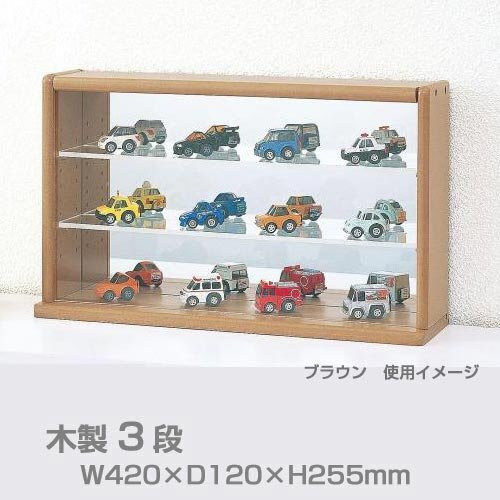 ■ コレクションケース ワイド3段・ブラウン・背面ミラー