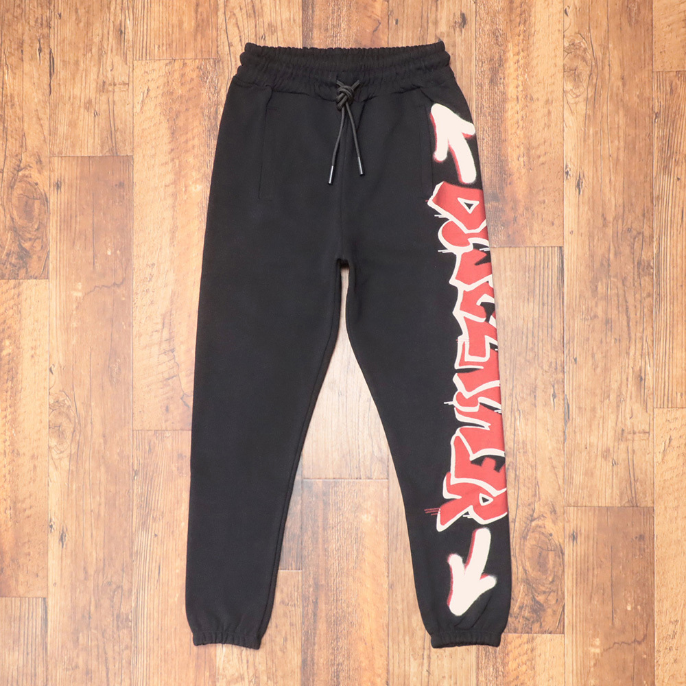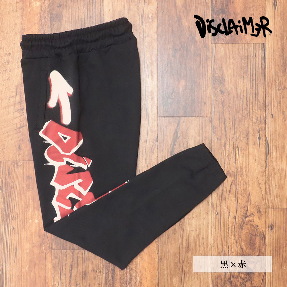 DISCLAIMER/Sサイズ/ジョガーパンツ サイドロゴプリント 裏パイル スウェット イージーパンツ 新品/黒×赤/mc281/