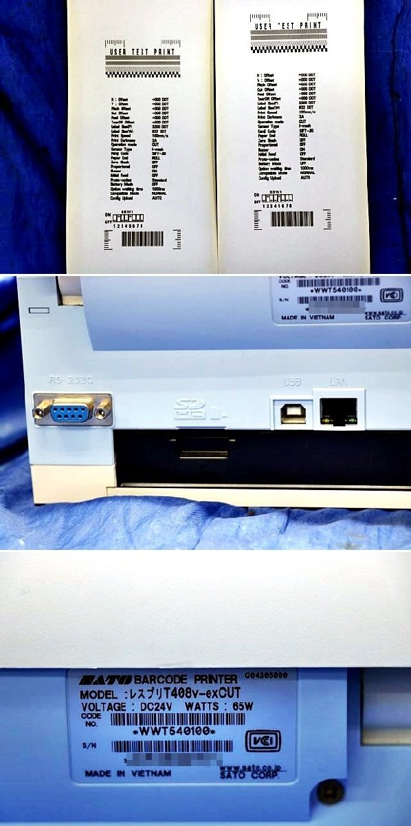 2台セット SATO/サトー ラベルプリンター ★L'esprit T408v-exCUT USB/LAN・カッター機能搭載★ ACアダプター付き 59402Y