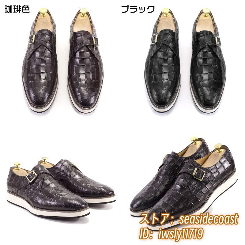 定価11万超◆鰐柄 ビジネスシューズ メンズ 超希少 職人手作り 本革 レザーシューズ 厚底 スリッポン ローファー 高級牛革 ブラック 26.5cm