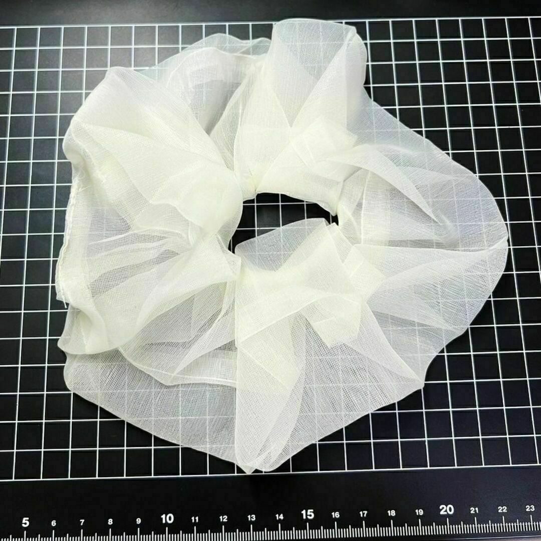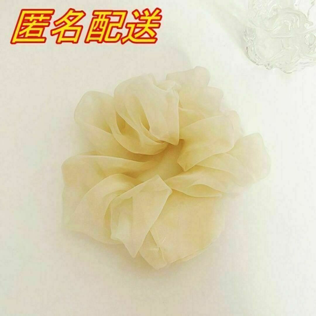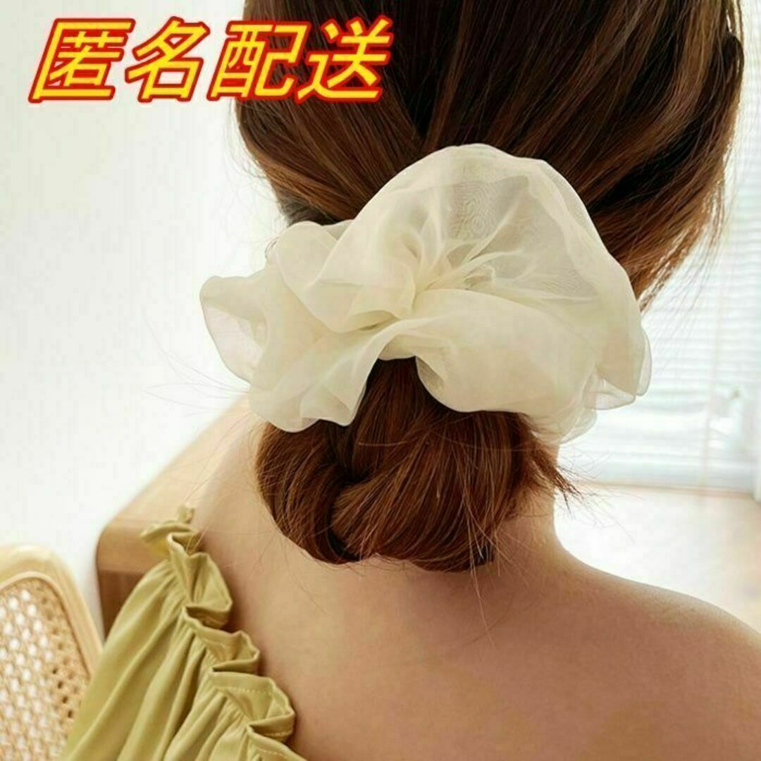 E321 匿名配送 シュシュ オーガンジー オフホワイト 髪ゴム ヘアゴム シフォン ヘアアクセサリー