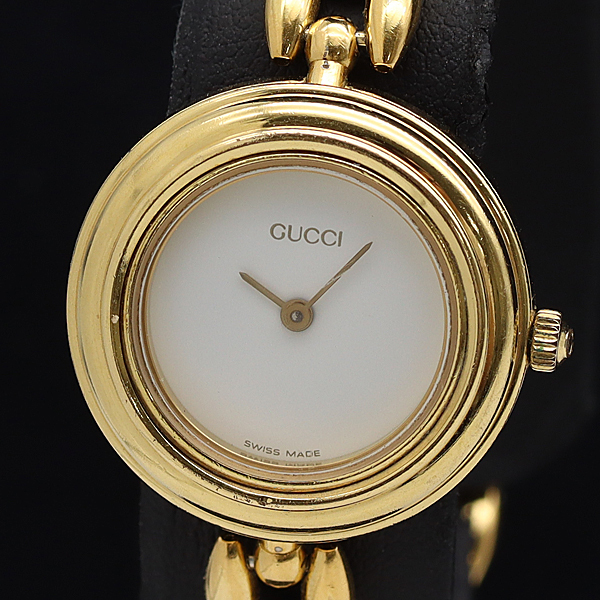 1円 稼働 グッチ チェンンジベゼル 11/12.2 QZ ホワイト文字盤 レディース腕時計 2000000 9NSM SMZ