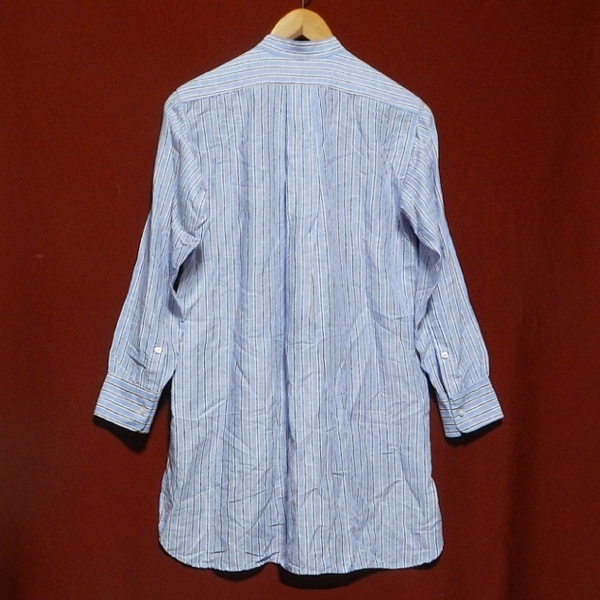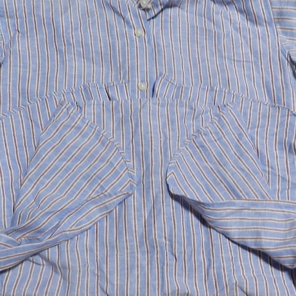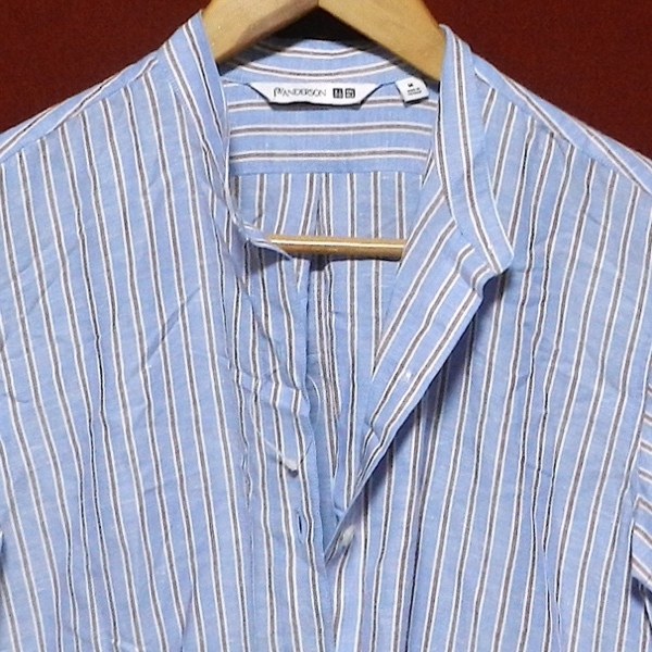 新品 ユニクロ JWアンダーソン バンドカラー リネンシャツ 長袖シャツ ロングシャツ ブラウスシャツ ワンピシャツ 紺 茶色 ストライプ M