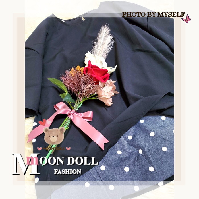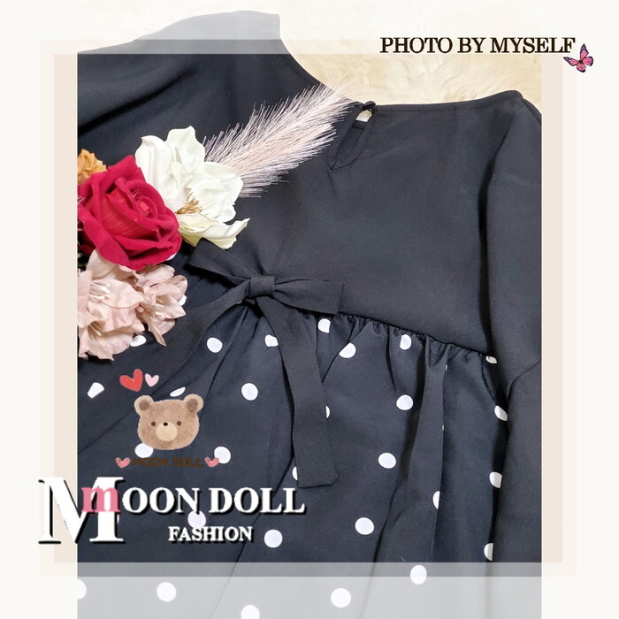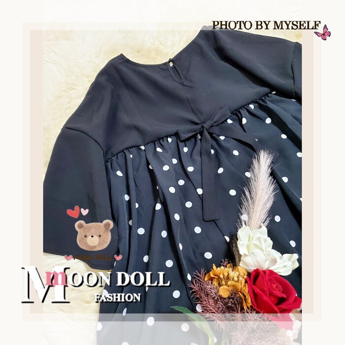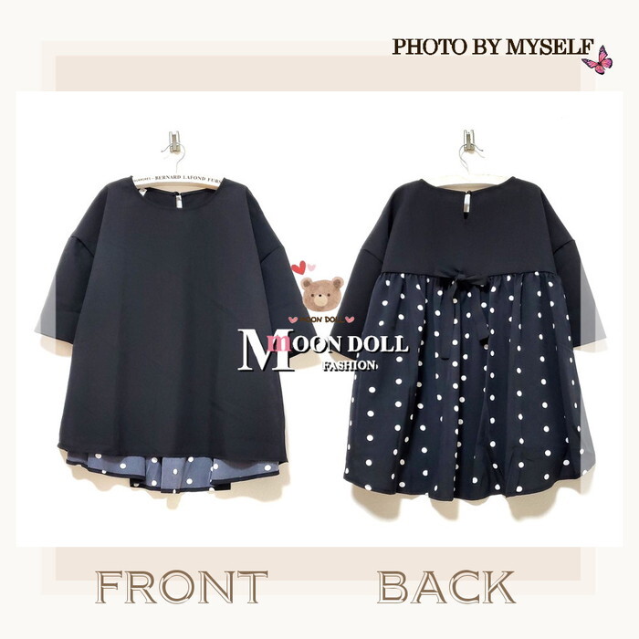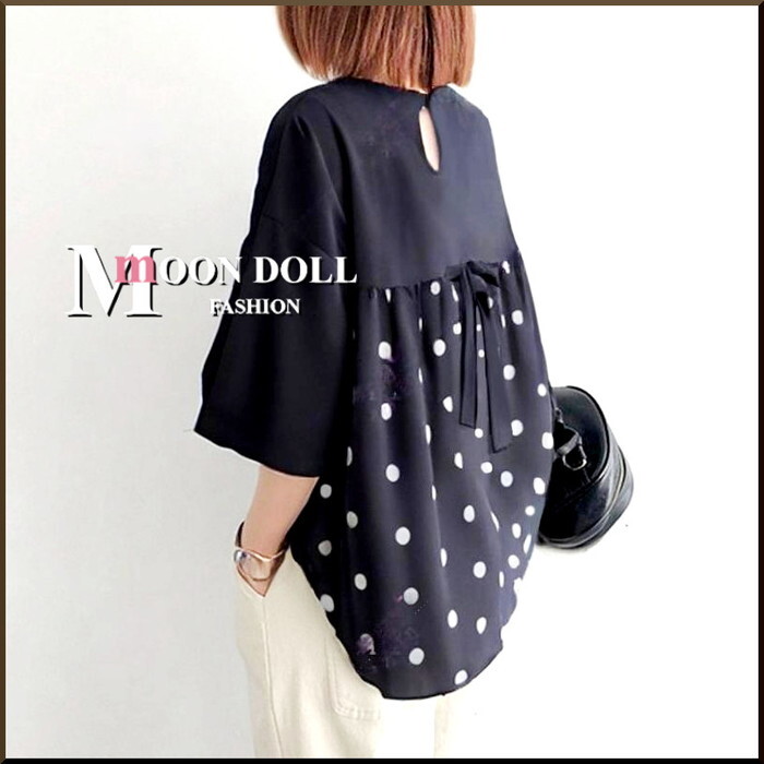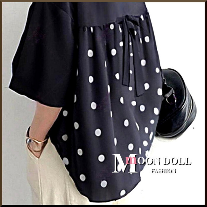 【~3L4L5L相当】バックドット切替涙開きホール+りぼん付ブラウス*黒 | |||