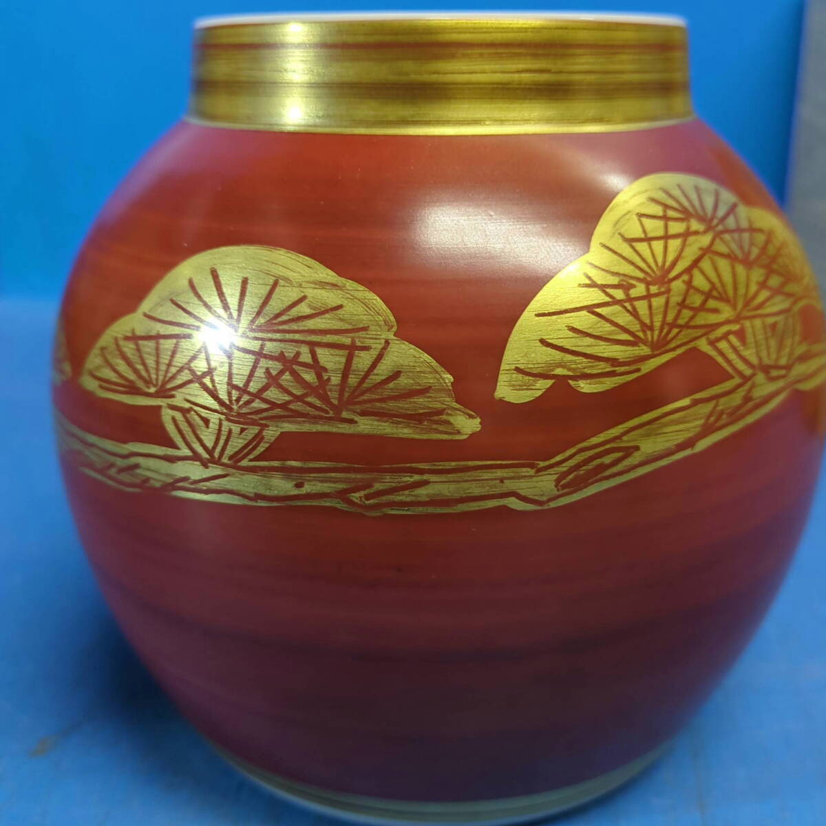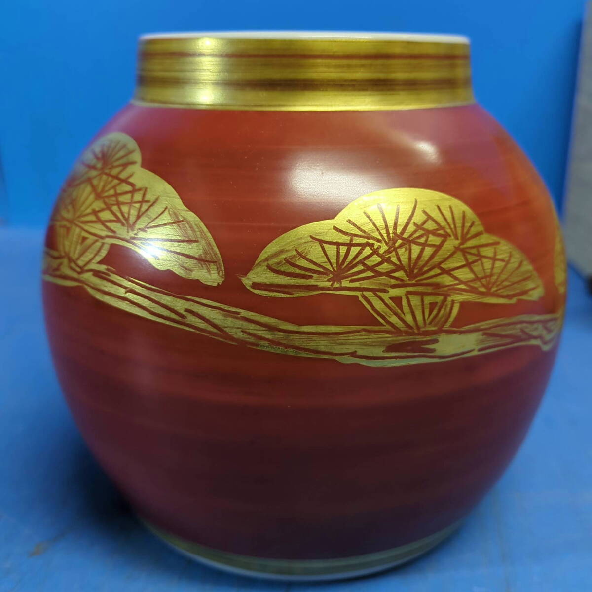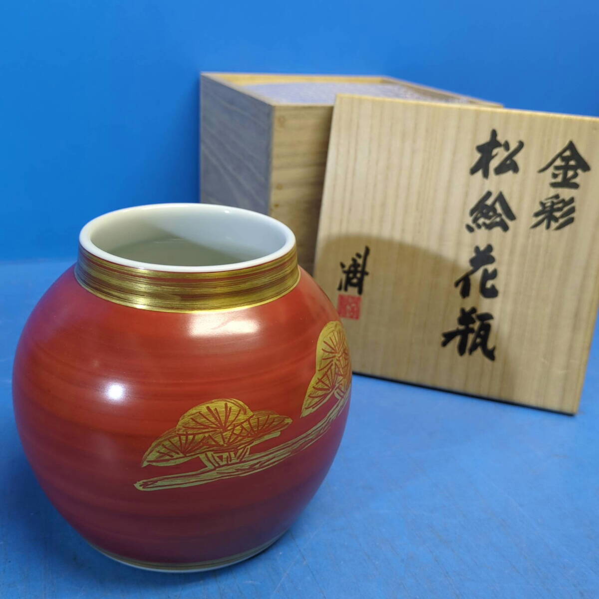 kankando『近藤濶 金彩松絵花瓶』高さ14cm サイン入 共箱《真作》
