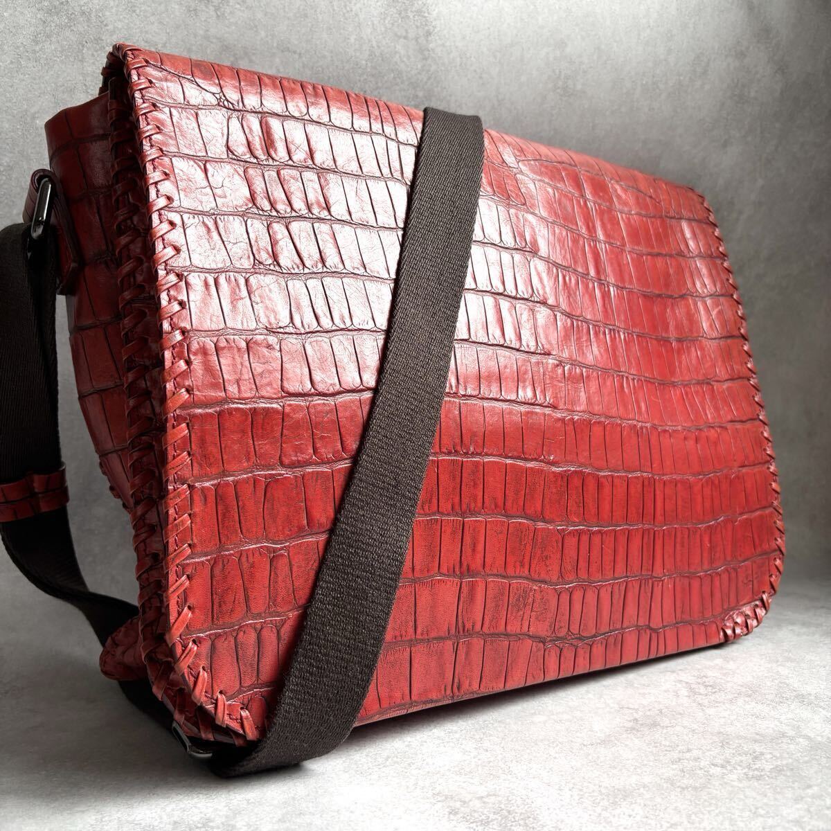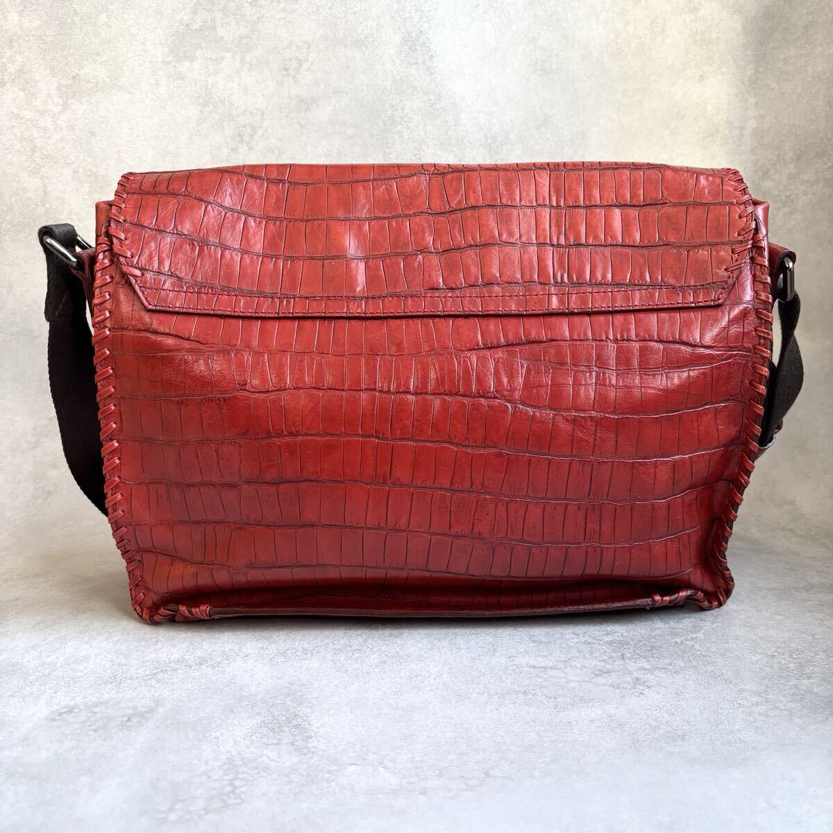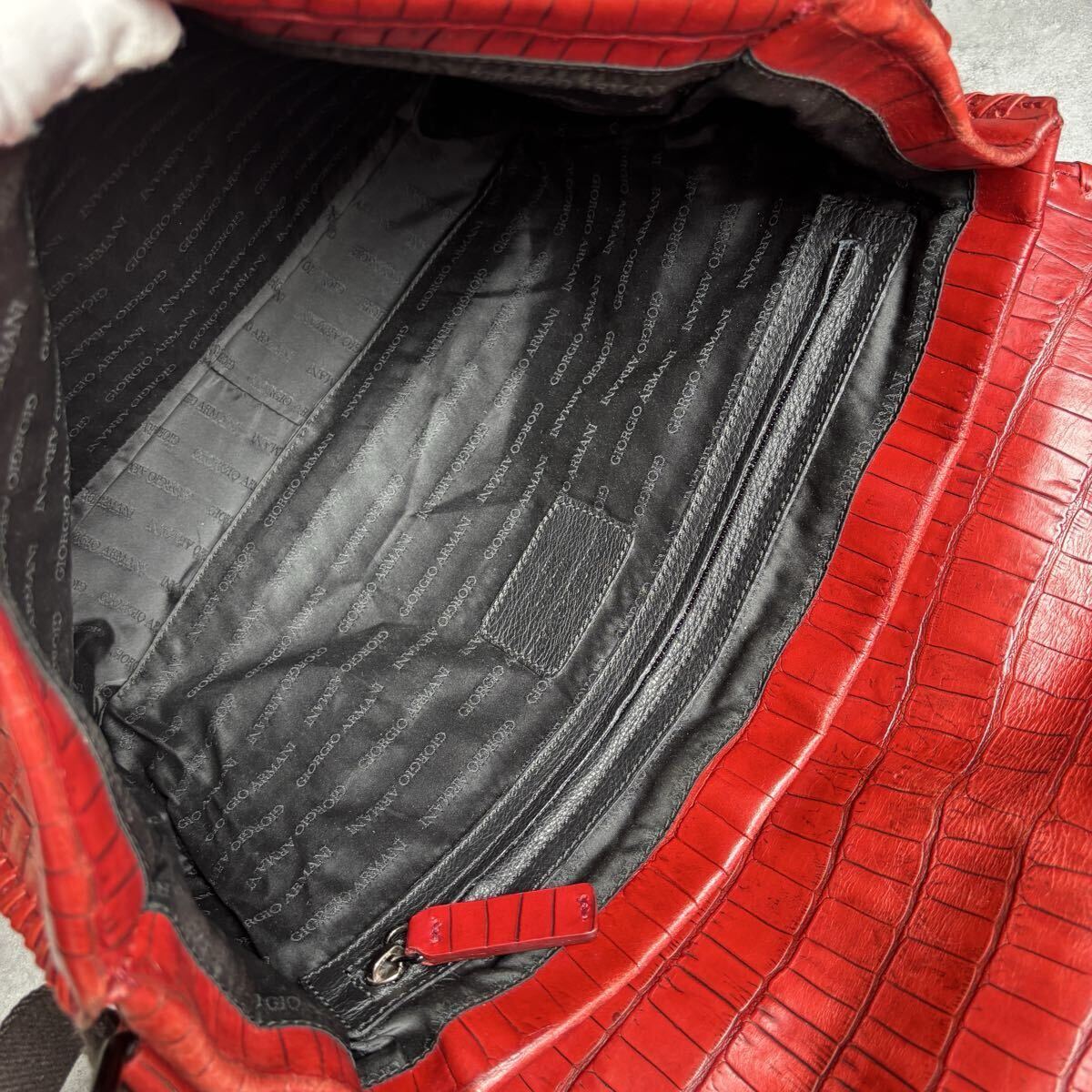 洗練された存在感を放つ、アルマーニのクロコ型押しショルダーバッグ。