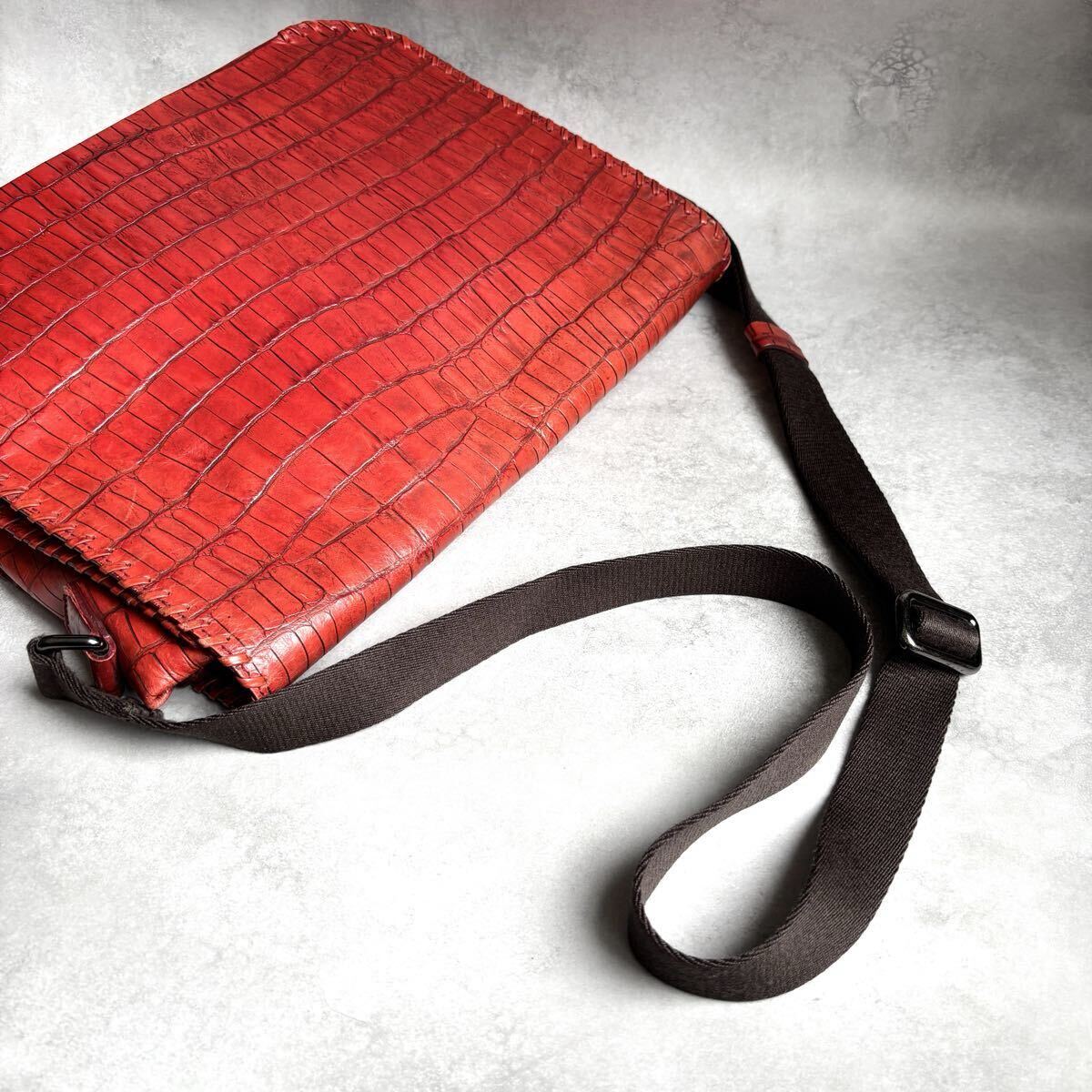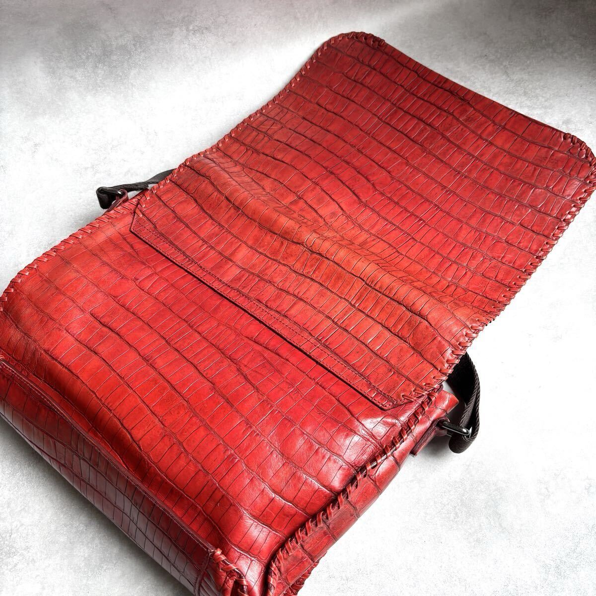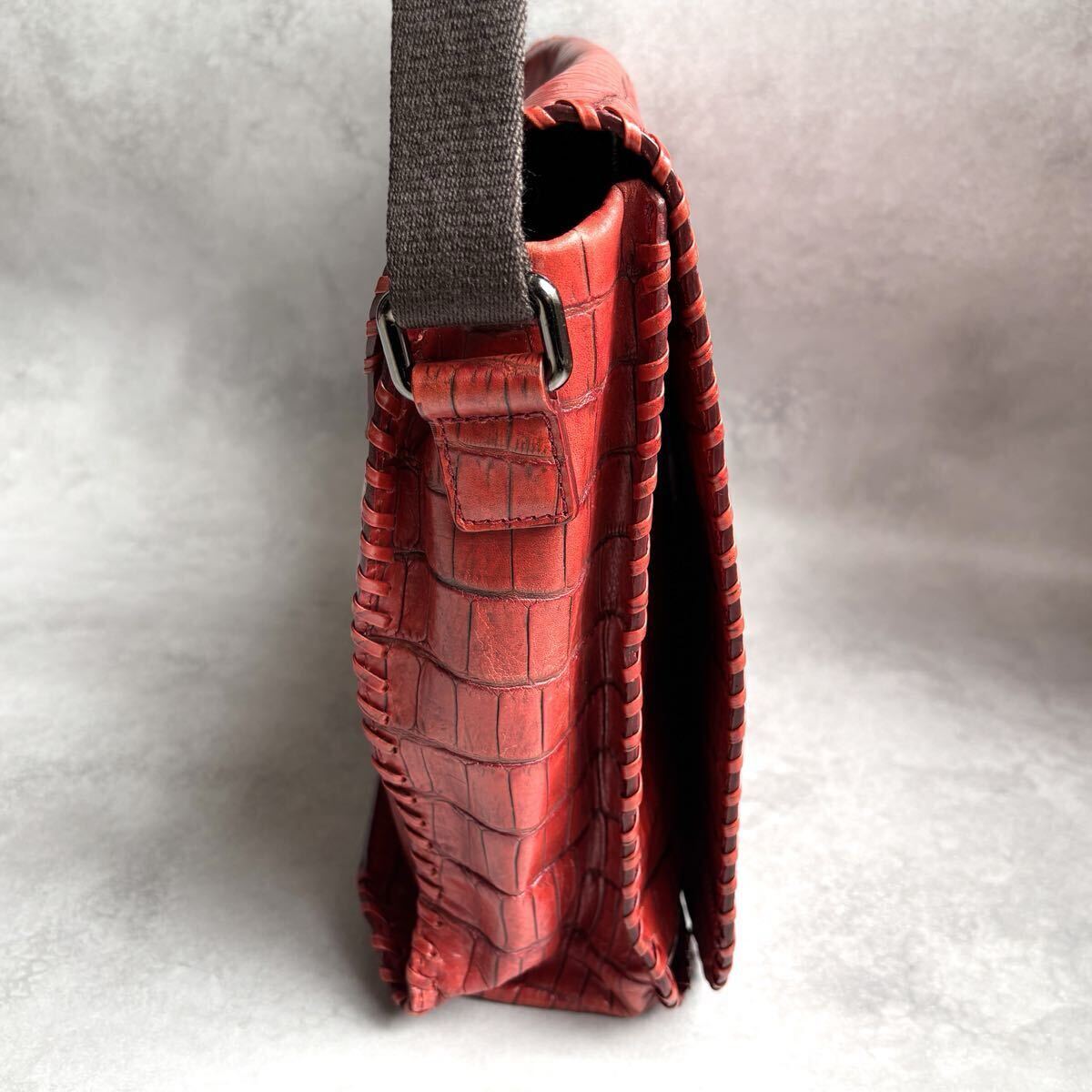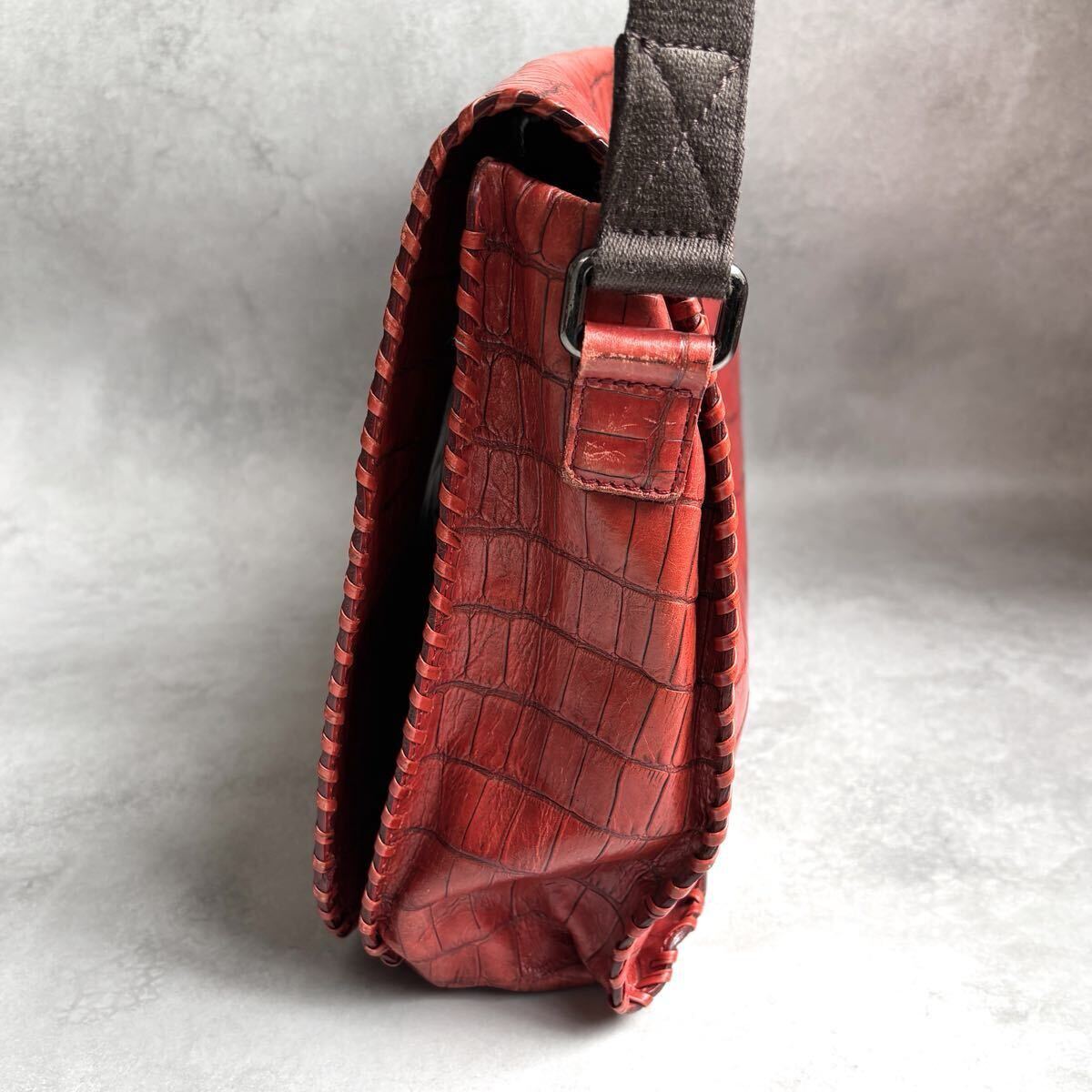 洗練された存在感を放つ、アルマーニのクロコ型押しショルダーバッグ。