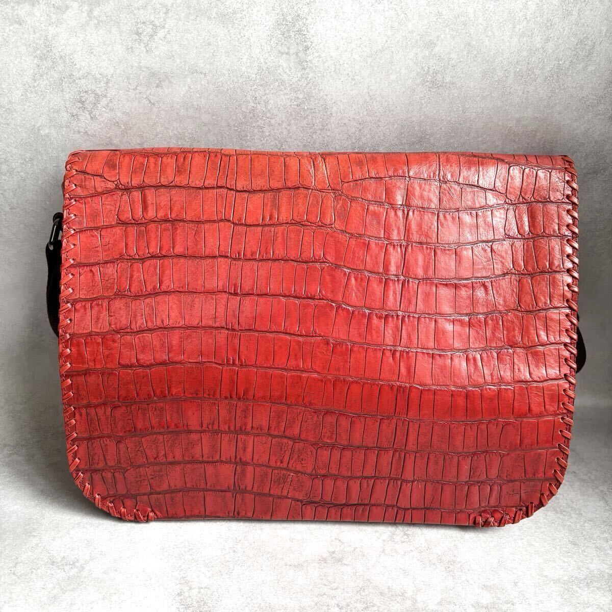 深みのあるレッドカラーとクロコ調レザーの重厚感が、ラグジュアリーでモードな雰囲気を演出します。