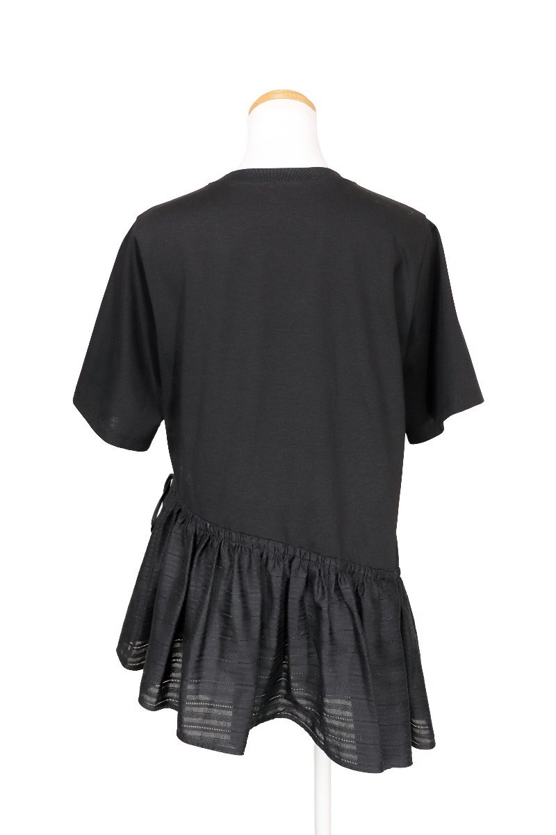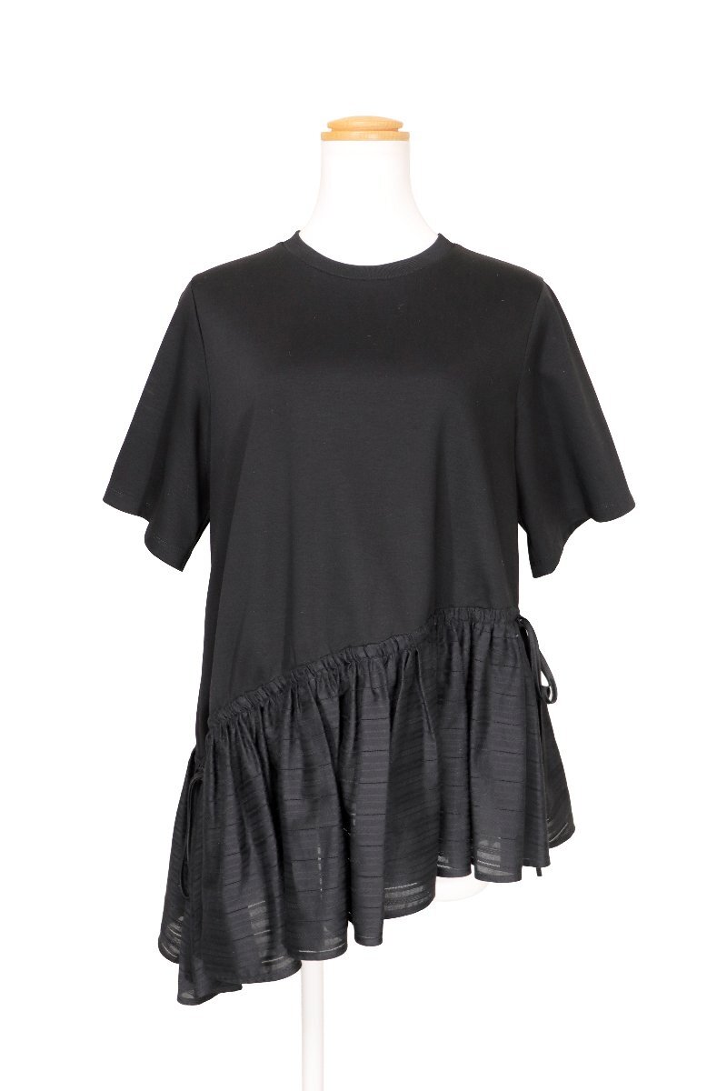 Tシャツのラフな雰囲気にブラウスのような上品さを組み合わせたトップスです。