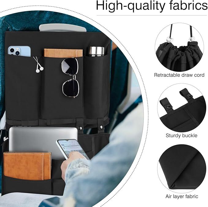 Amazon | TOCCOOL 飛行機トレイテーブルカバー デスク下アタッチメントセット付き シートバック整理&持ち物収納用旅行ツール 折りたたみ式フライトオーガナイザー ウォーターボトルホルダー付き (ブラック)