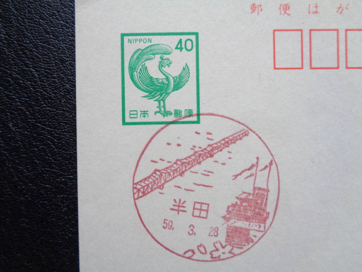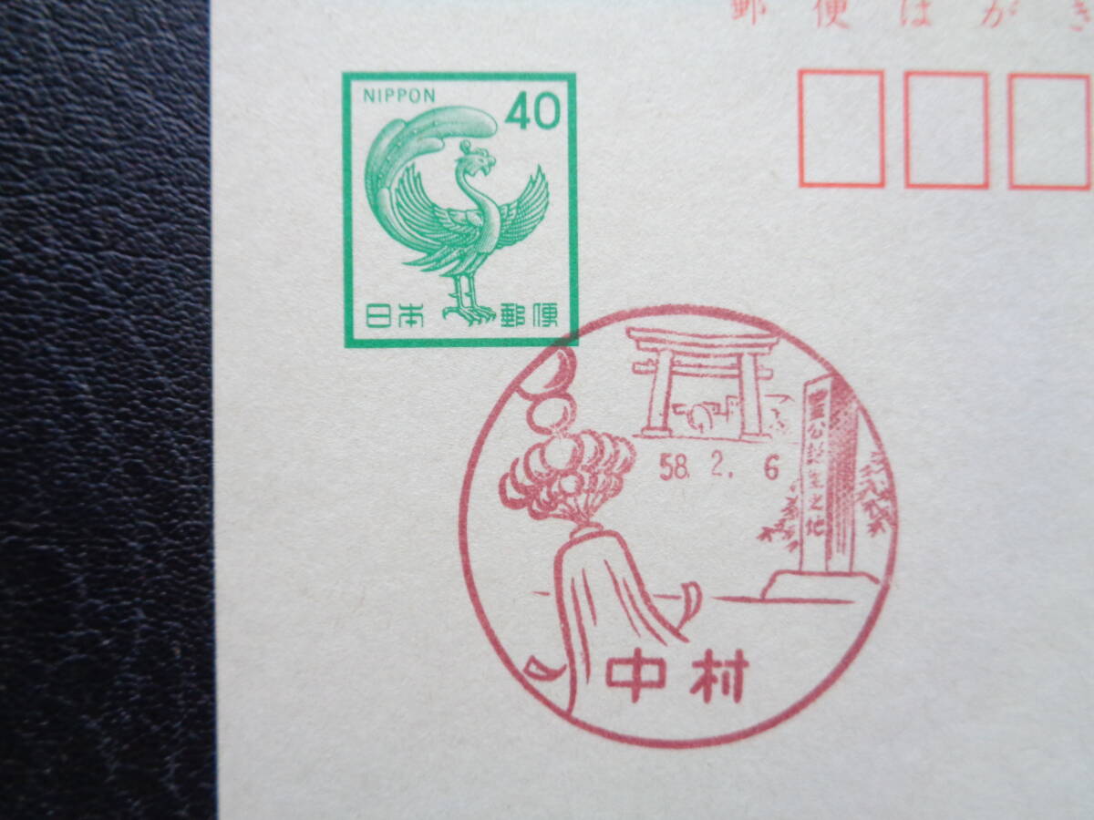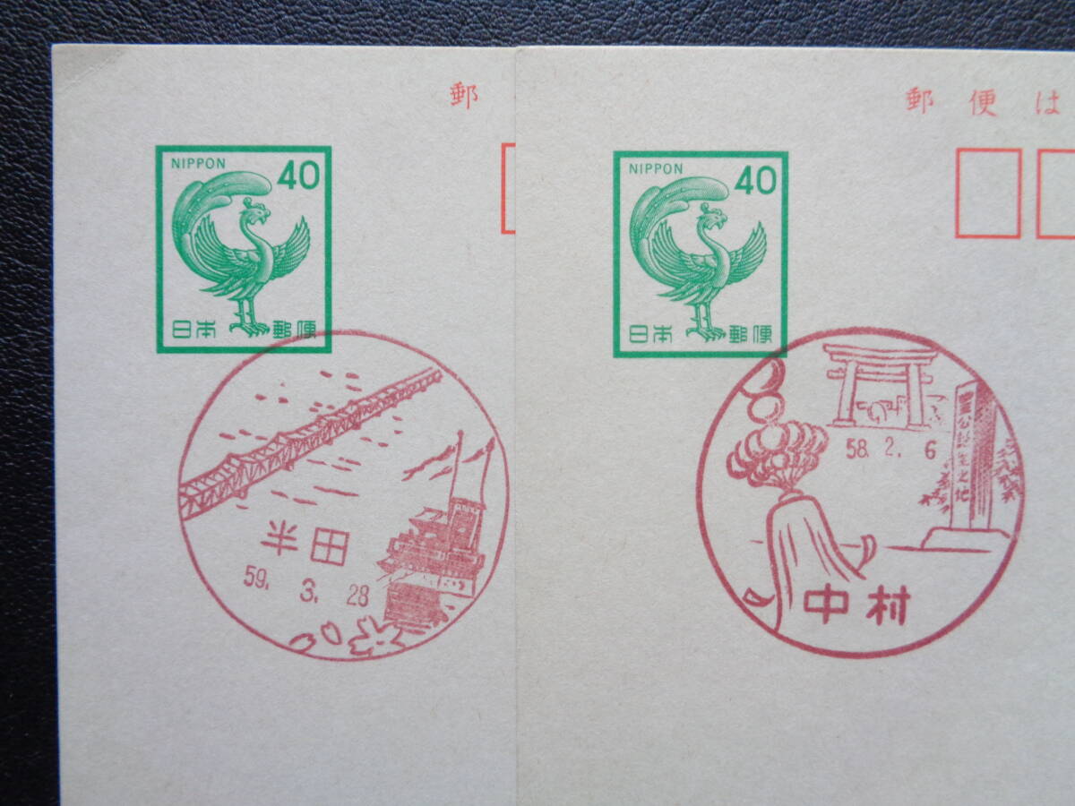 鳳凰はがき    初日印/風景印    愛知県2枚    中村/S58.2.6    半田/S59.3.28