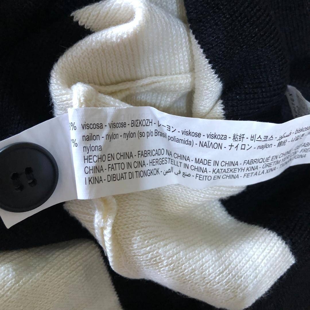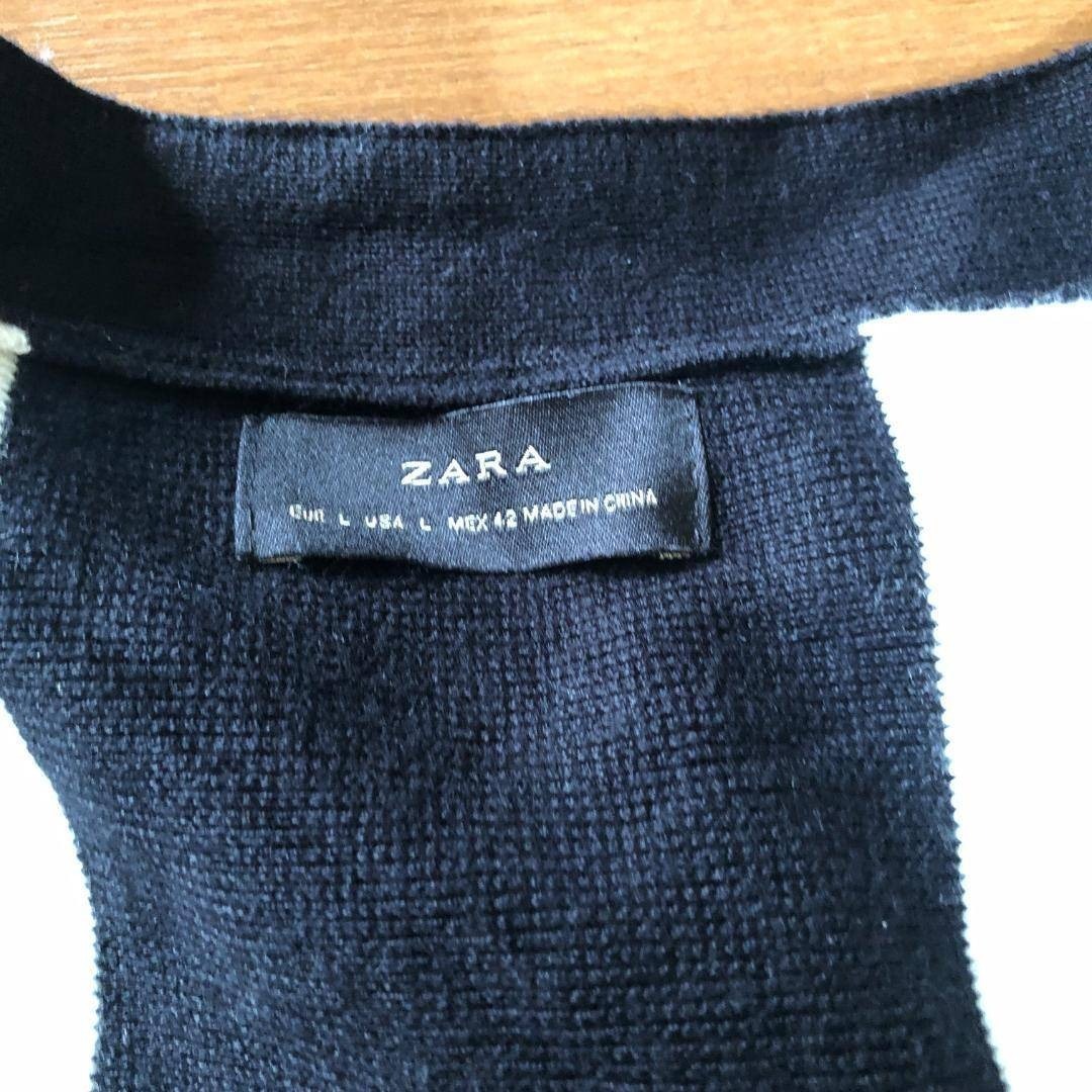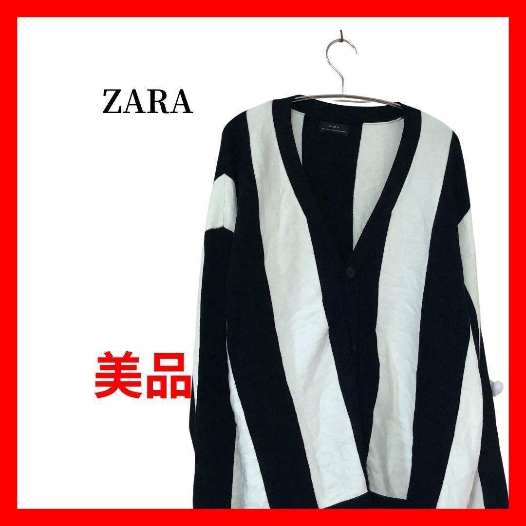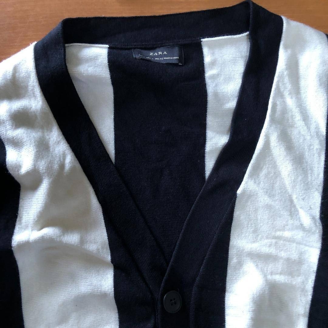 ZARA Vネックカーディガン 白黒 ストライプ L モード B1995