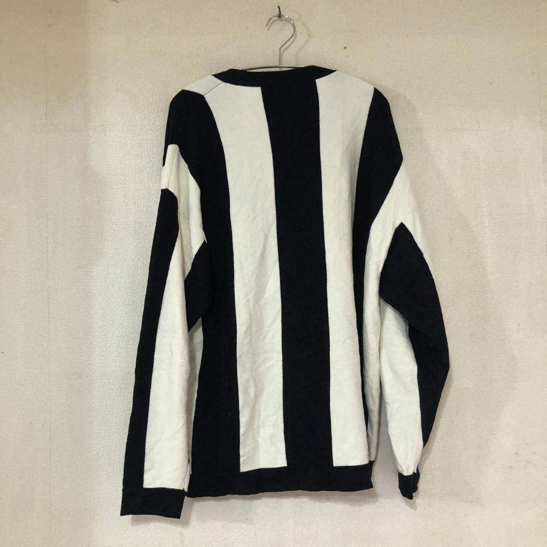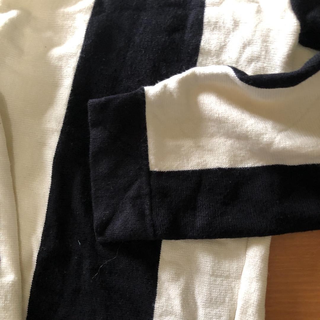 大胆な白黒の太ストライプ柄が特徴的で、着るだけでコーディネートの主役になるモードな一枚。