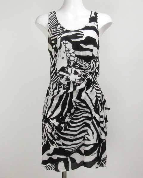 モノトーンカラーのエレガントワンピース♪ シフォン素材の軽やかな一品。 動く度に揺れるお裾が素敵です! アームホールに薄汚れがございます。 バックファスナー仕様。 着丈約87~91cm 肩幅32cm バスト約85cm W約74cm H約88cm 【サイズ】:(38) 【素 材】:(レーヨン97%・ポリウレタン3% 裏地/ナイロン) 【 色 】:(黒白) 【程 度】:(B) **** 12151125-024 211 031 | ||||