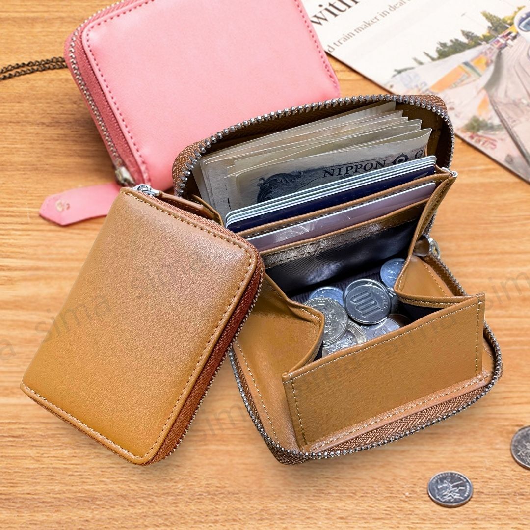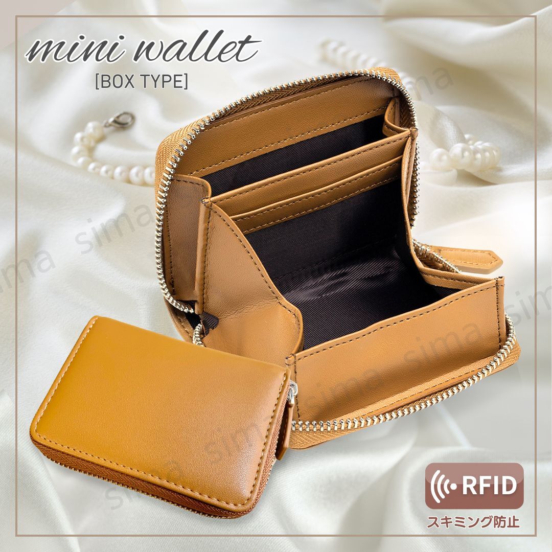 ミニ財布 コインケース 小さい コンパクト 財布 BOX型 ボックス型 小銭入れ スキミング防止 RFID 革 レザー メンズ レディース ブラウン |