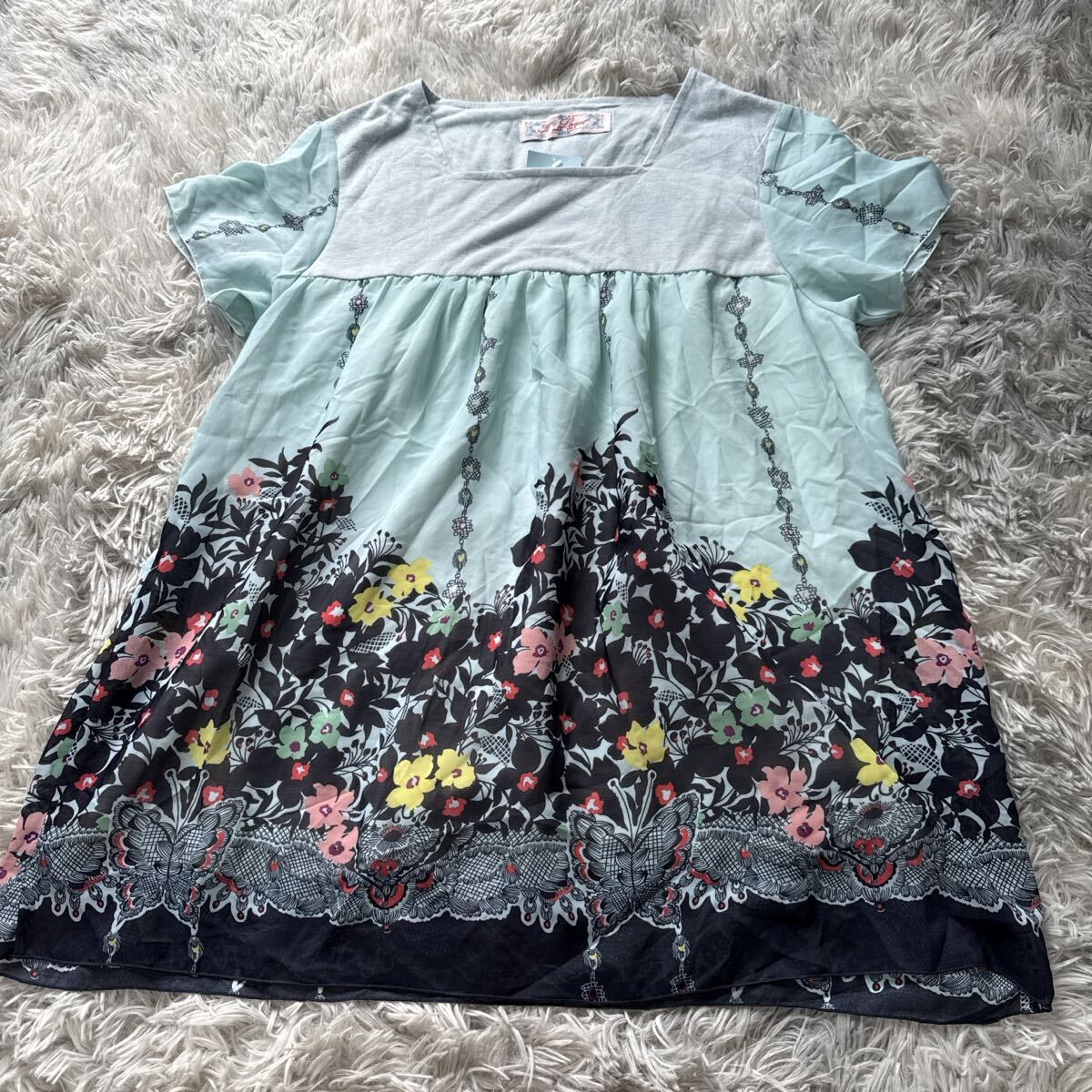 | +Thank You+ | ★★★ スクエアネックシフォン花柄切替チュニックミントグリーンF☆未使用55 ★★★ | +Thank You+ |