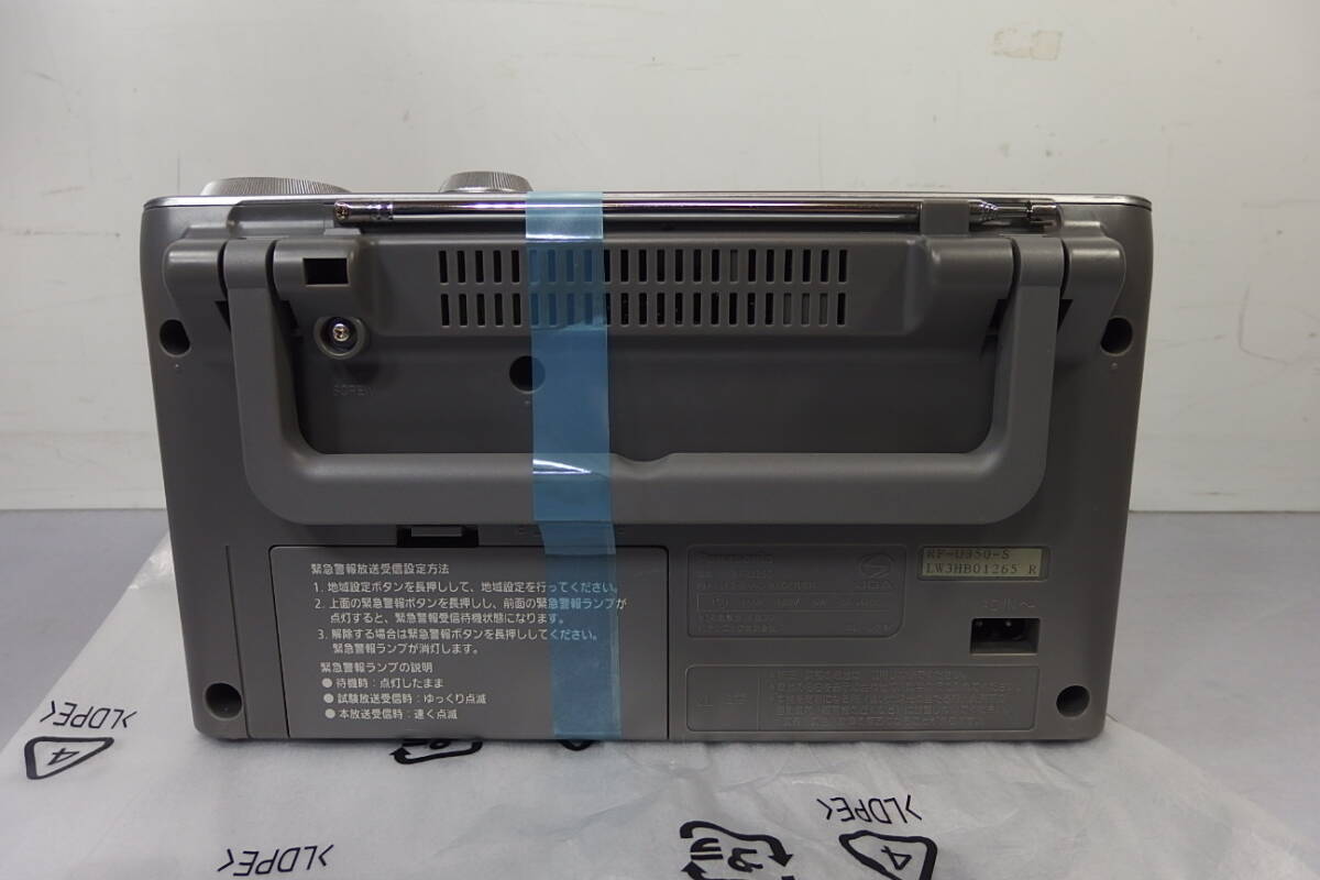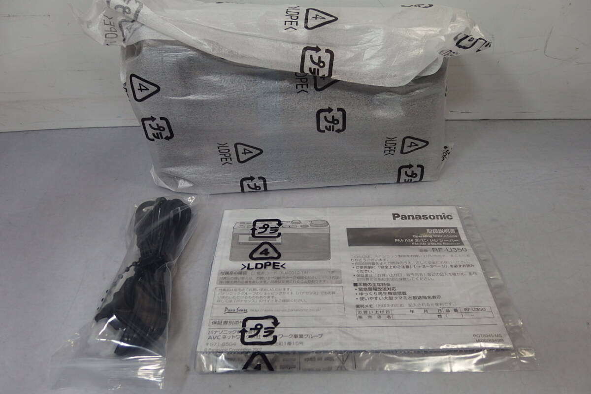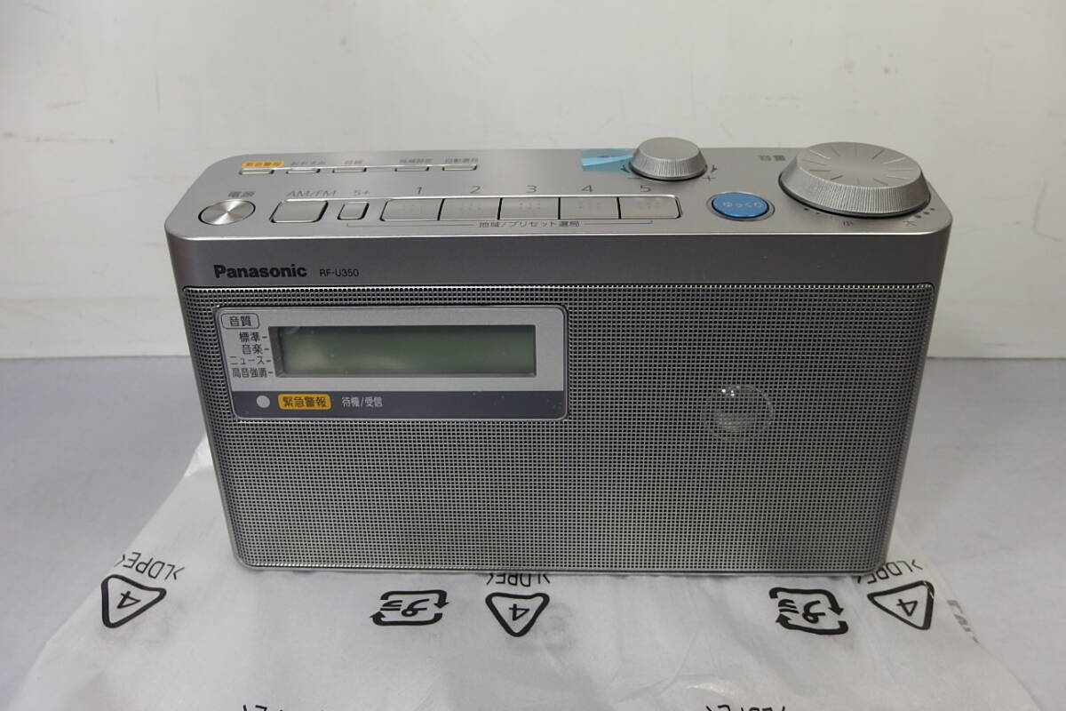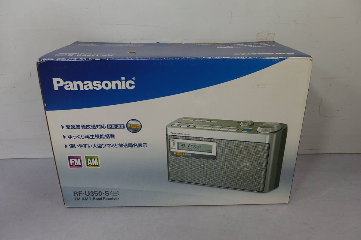 ■コメント Panasonic(パナソニック) 大型液晶搭載 FM/AM 2バンドレシーバー RF-U350-S(シルバー) 緊急警報放送対応ラジオ マルチバンド の希少未使用(ショーケース内展示品.付属完備)になります。 RF-U350は、操作性と受信性能を両立させた高性能ポータブルラジオで、広い受信帯域と質の高いスピーカーを備え、大型液晶を使ってわかりやすい表示を実現しています。しかも、スリープタイマー機能で設定した時間になると自動で電源オフになり、標準・音楽・ニュース・高音強調の音質調整モードを使い分けられるため、放送内容に応じた聞きやすさを維持できます。さらに「ゆっくり再生」機能により、早口のニュースや語学番組の聴き取りやすさをサポートし、語学学習用途にも適した設計です。くわえて、地震や津波などの災害時には緊急警報放送に対応し、もしもの時にも情報受信を確保できる安心感があります。その他、大型ロータリーツマミや天面操作パネル、オートエリアバンク機能、日本語(カタカナ)表示など、使いやすさを追求したユーザーインターフェースを持ち、夕暮れ時や夜間にも見やすい表示性を意識した設計です。RF-U350は、リスニングの快適性と災害時対応を兼ね備えた信頼性の高いラジオモデルです。現在、流通希少かつ高額な未使用になりますので、この出品に是非! ※当方の出品物をご覧頂き大変感謝です!この品の他にも類似品・関連品・1点物・人気の品・新品・未使用・希少品・廃版品・高額品・隠れたお宝などを1,000円~同じくヤフオクで多数出品しております。こちらの品以外以上に欲しい物、驚きの物が1,000円で見つかるかも!!お時間や興味ありましたら是非覗いてみてください(こちらをクリックやタップ⇒)他のヤフオク出品物(ヤフオクHP内) ■状態 未使用(量販店ショーケース内展示品)。肉眼で確認できる目立つ展示感や保管劣化は、ほぼ皆無に近いです。保護シールも付いており、付属も大半が未使用や未開封で完備。内発泡が展示中紛失で付属せず。箱に劣化有。 ※リユース品、サンプル品やレンタル品やレンタル落ち品、海外品、コピー品ではなく日本版正規販売品(外資メーカー正規輸入品含(画像.JAN等参照))です。 ※本体のみならず付属(バッテリー付属の品のバッテリー自然劣化含)や箱やパッケージを含む全ての詳細状態記載や画像掲載はできない、しない場合がございます。尚、画像掲載や記載ないものも悪意ある物ではなく、記載掲載の有無や程度(個所数や個数等も含)に関係なく外観でのクレームはご遠慮下さい。新品や未使用や展示品も保管劣化、展示劣化の主観違い・見落としもある場合がございます。ホコリ付着や手あか、傷、スレ跡、画面や端子やボタンや溝への劣化も同様でございます。使用に支障はございませんので、ご容赦・ご理解お願い致します。 ※未使用(未開封や予めの完全未使用記載を除く)の電化製品ですが、ショップ等で電源不良や液晶不良がないかの確認の為に1度通電のみさせている場合が稀にございます。予めご了承下さい。 ※ご案内・ご注意を参照(下の青いタグ内①) ■保証 未使用なので、何かございましたら近隣量販店や製造元・メーカーにお問い合わせ下さい。 ※未使用状態を保つために当方では動作確認や状態確認はしておらず付属(バッテリーや充電池、乾電池含)他も含めて保証なしとなります。受け取り後に文章を確認していないとの事でのクレームや返品もご遠慮頂くようお願い致します。 ※上記状態で記載させて頂いたように、保管劣化や展示劣化での外観クレームも記載の有無関係なく対応できません。予めご了承ください。 ※未使用とはいえ、稀に初期不良や他の原因で故障している場合もございます。その際も当方では対応しかねます。万が一はご自身での修理(可能かの保証も無)や部品取用、付属活用、他での対応や用途でお願い致します。 ※ご案内・ご注意を参照(下の青いタグ内①) ■お支払い方法 ヤフーかんたん決済(落札代金+送料) ※ご案内・ご注意を参照(下の青いタグ内②) ※支払の手順を確認=ヤフオクHP ■配送方法 ヤフネコ(宅配)かネコポスか郵便関連類(選択可能な物のみ) ※ご案内・ご注意を参照(下の青いタグ内③) ■特徴・スペック・仕様 ●使いやすい大型ロータリーツマミ&日本語(カタカナ)放送局名表示&オートエリアバンク機能 大型ロータリーツマミなど操作部を天面に配置。また、お住まいの地域に合わせて放送局を自動的に設定します。さらに日本語(カタカナ)・英数でわかりやすく表示します。 ●放送内容が聞き取りやすいゆっくり再生機能 ワンボタンでニュースや情報番組の話し声をゆっくりと再生できます。早い口調の話し声もわかりやすく、語学学習や株式情報番組にも便利です。 ●地震や津波などの備えにFM緊急警報放送対応 お住まいの地域に合わせて、緊急警報放送を実施しているFM放送局を自動的に設定。放送局からの緊急放送警報を受信した時、本機の電源が自動的に入り、地震や