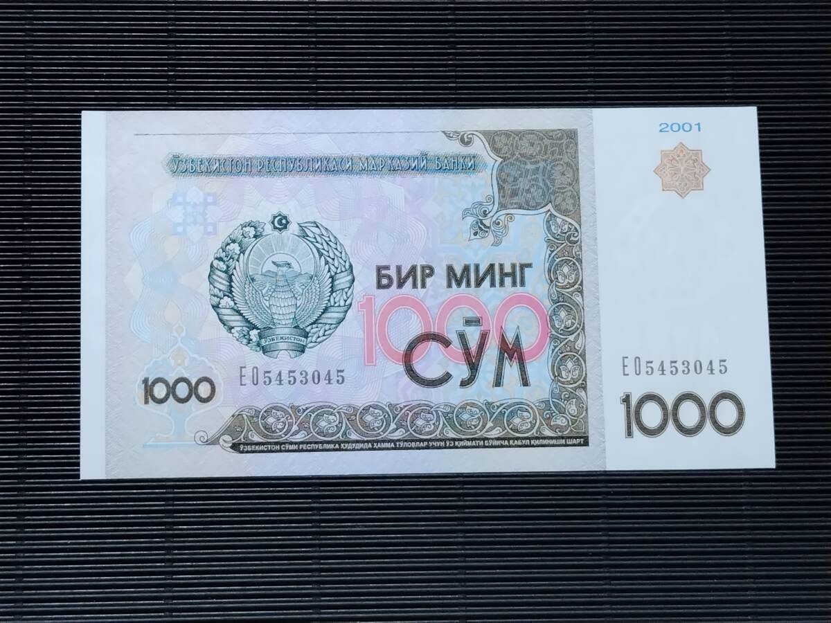 ウズベキスタン 1000 So'm札  コレクション向きのピン札  2001年 甘い未使用~未使用   p-82(1) #EO5453014