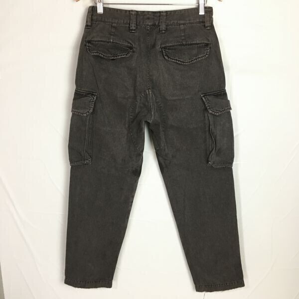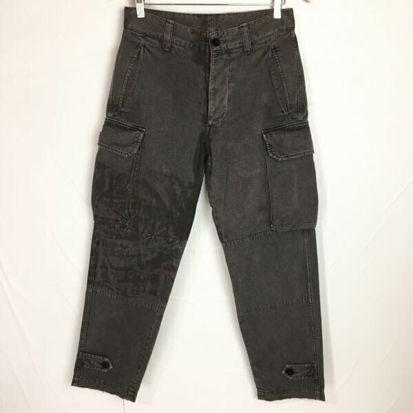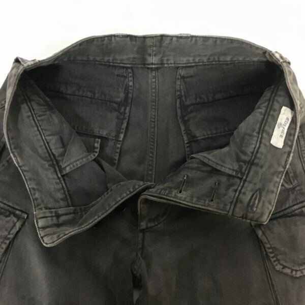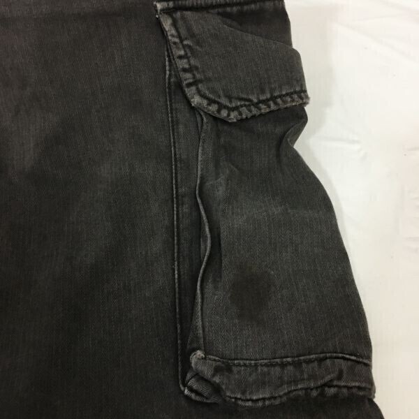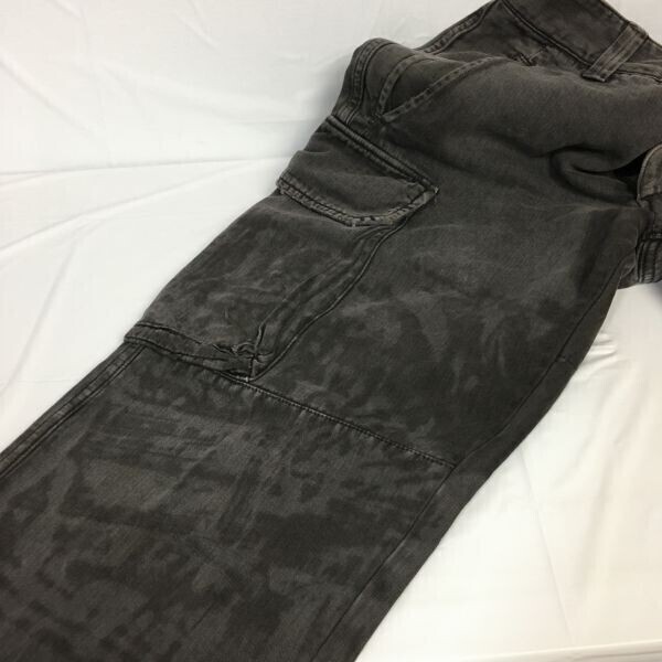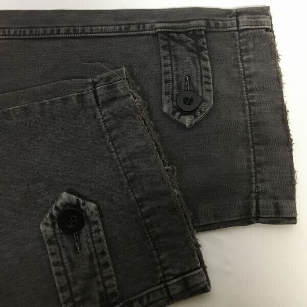 多少の着用感、裾のスレがございます。右足のひざ付近にまだらに黒くなっている所は確かではございませんが柄かと思います。