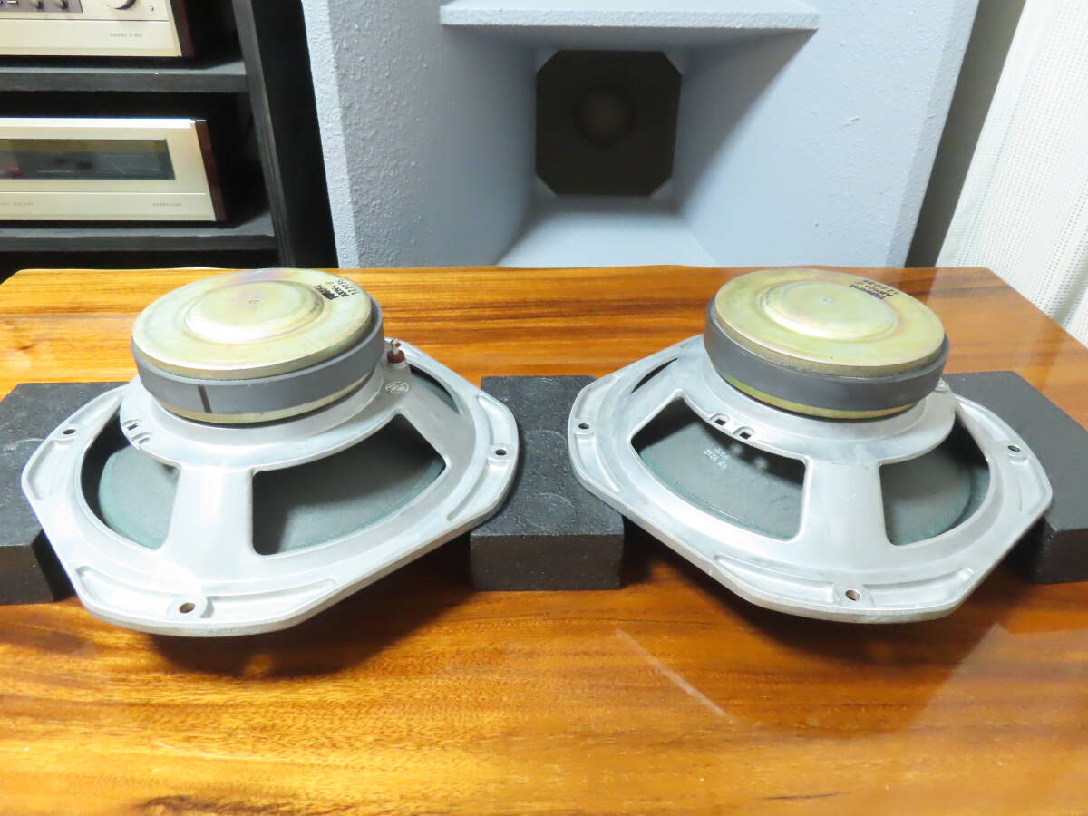 ●各部の清掃、色褪せた振動板の着色、フレーム等のメンテナンスを行い、末永くご愛用頂けるよう綺麗に仕上げてあります。 ●この着色につきましては、コーンの表面に塗料を色付けするのではなく、音質に影響の無いオリジナル同等の手法で抄紙内部から着色を行っています。 ![]() ●音質低下を起こす網内部のホコリを丁寧に除去しています。振動板、エッジ良好です。左右雑音無く綺麗な音楽を聞かせてくれます。 ●代表的なプロモニターとして長らく君臨していた名機中の名機です。当ウーファーは希少な後期シリアルのウーファーユニットです。 ●接着剤等改良されているモデルですので、錆の発生も無く、非常に綺麗な磁気回路です。又、固着の心配もありません。 ●初期シリアルに多く見られる、固着などの修理や、状態の良いシステムをお探しの方は是非 | |||