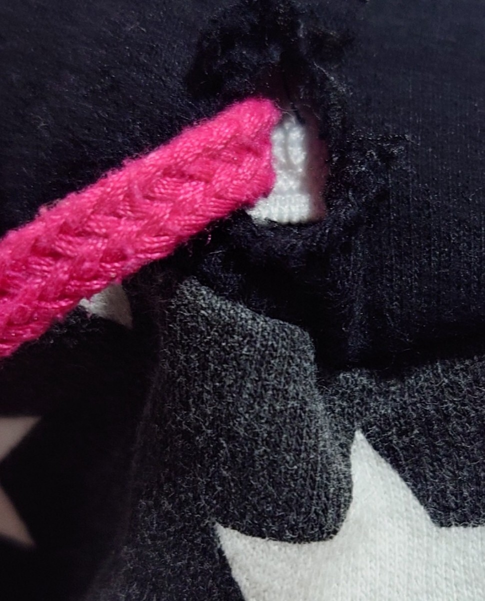 画像3、紐が出る穴が片側だけ広がっています。
