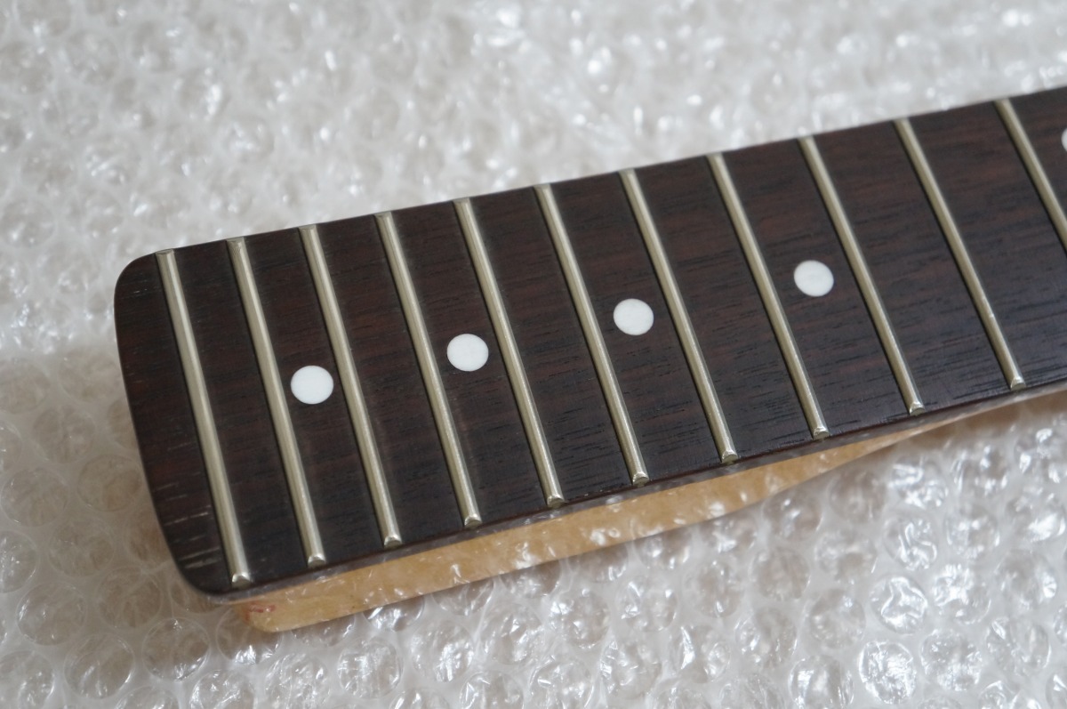 つばだし22フレット、メイプルネック、ローズウッド指板、Fenderヘッド、ロック式ナット対応のネックです。