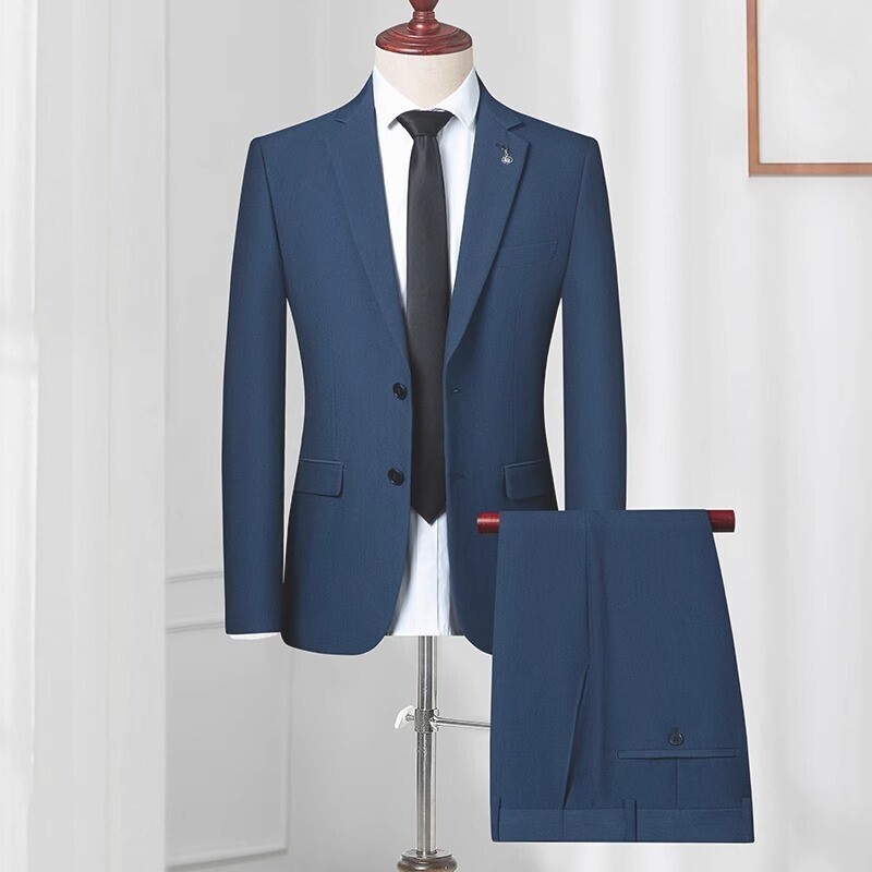 H1144-L ネイビー 新品 ウール混 セットアップスーツ フォーマル メンズ 春秋 中厚 ビジネススーツ 就活 セットアップ ウエスト調節可能 家庭洗濯可能