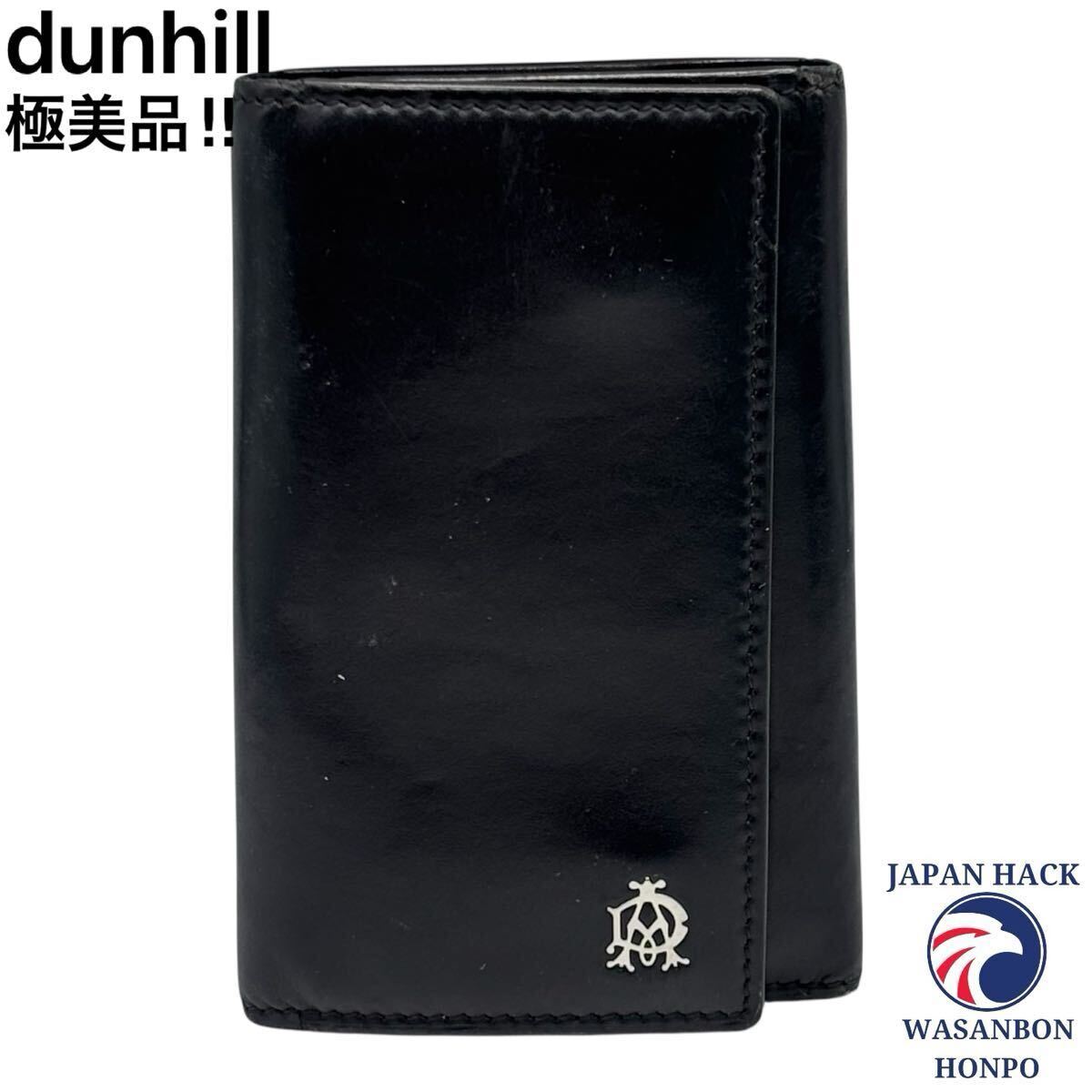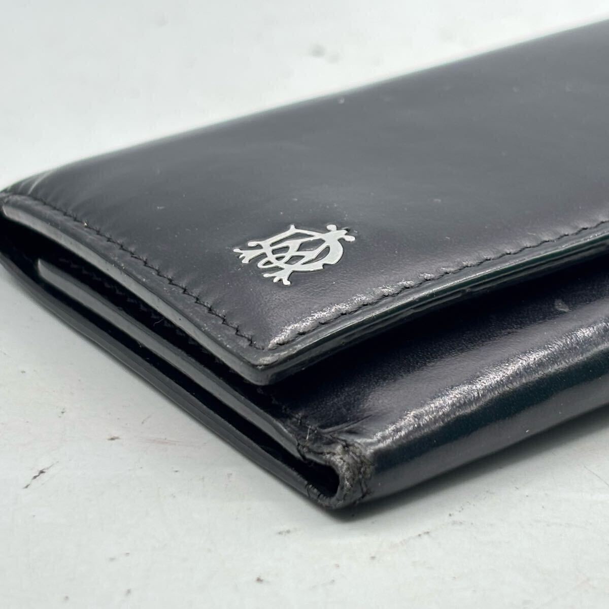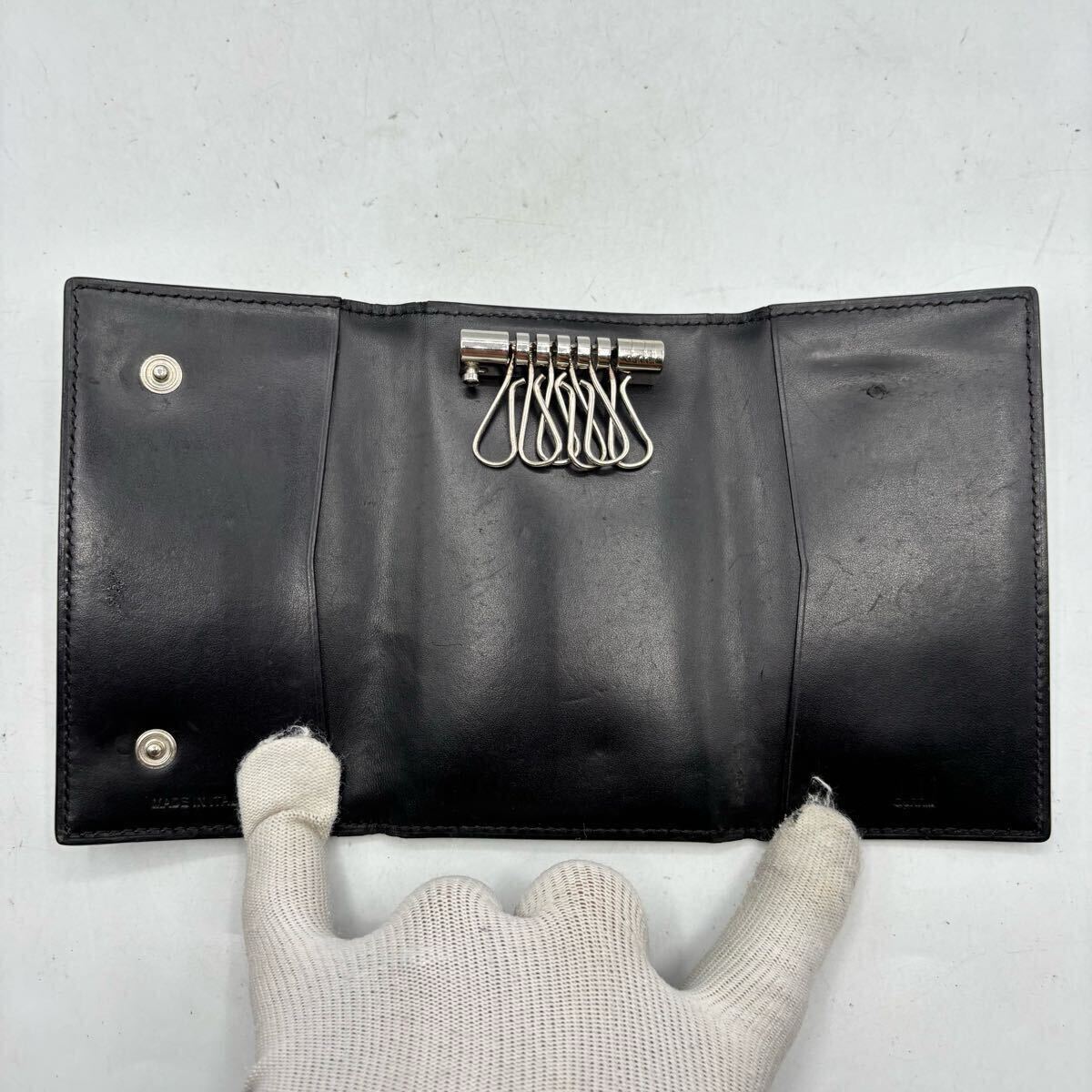 ¥1〜 dunhill 極美品 メンズ キーケース 6連 レザー キーリング付き ブラック×ブルー ロゴエンボス ビジネス ブランド 会社員