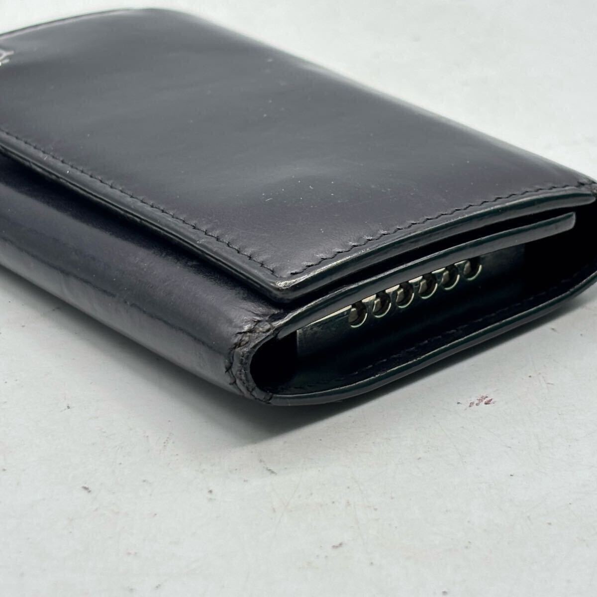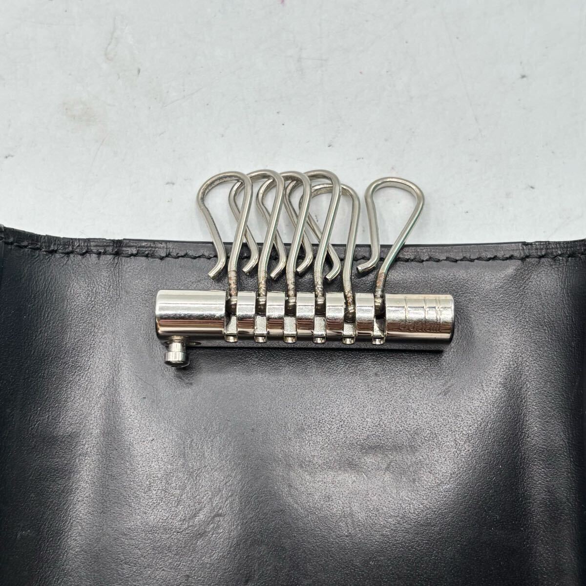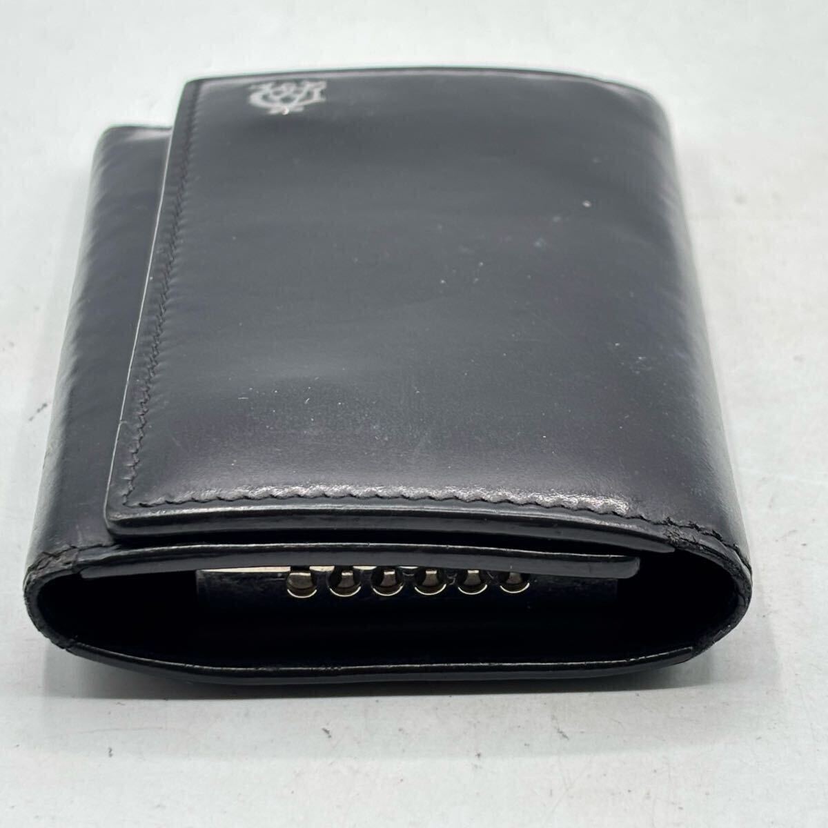 ¥1〜 dunhill 極美品 メンズ キーケース 6連 レザー キーリング付き ブラック×ブルー ロゴエンボス ビジネス ブランド 会社員