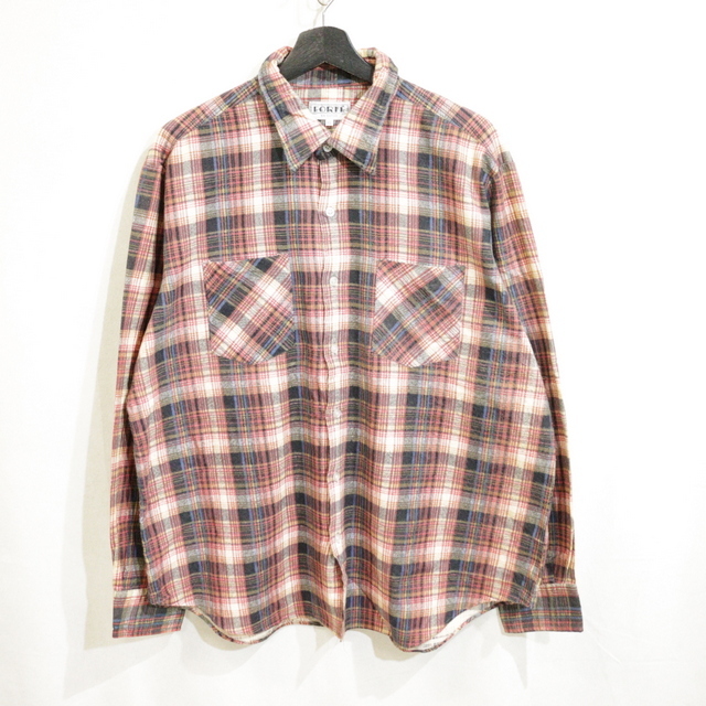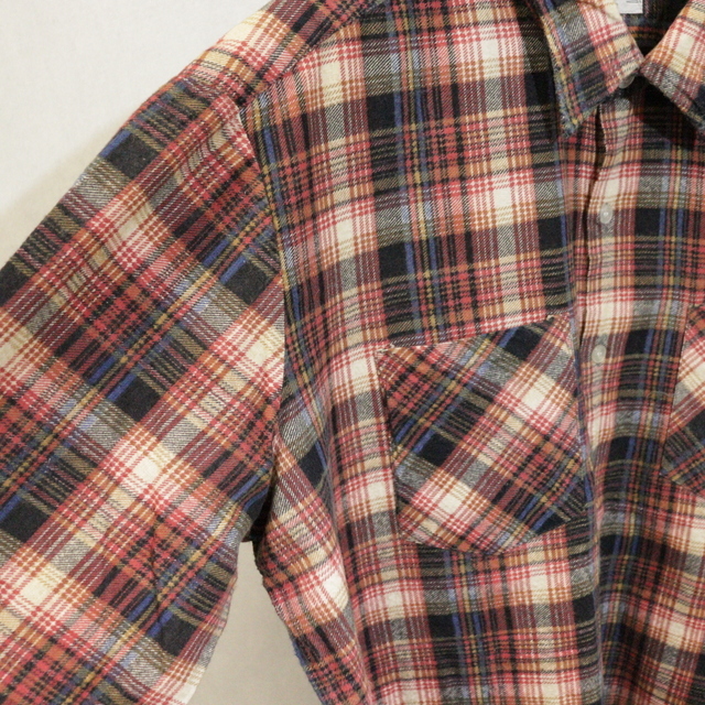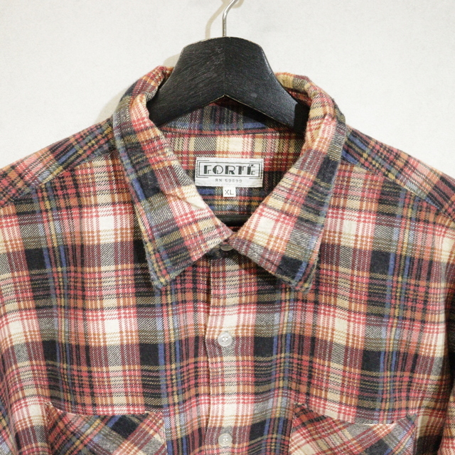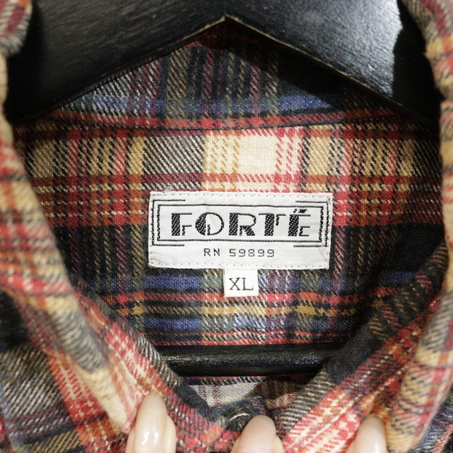 n935 90sビンテージ FORTE 長袖 プリントネルシャツ■1990年代製 表記XLサイズ レッド 赤 チェック アメカジ ストリート 古着 古着卸 激安