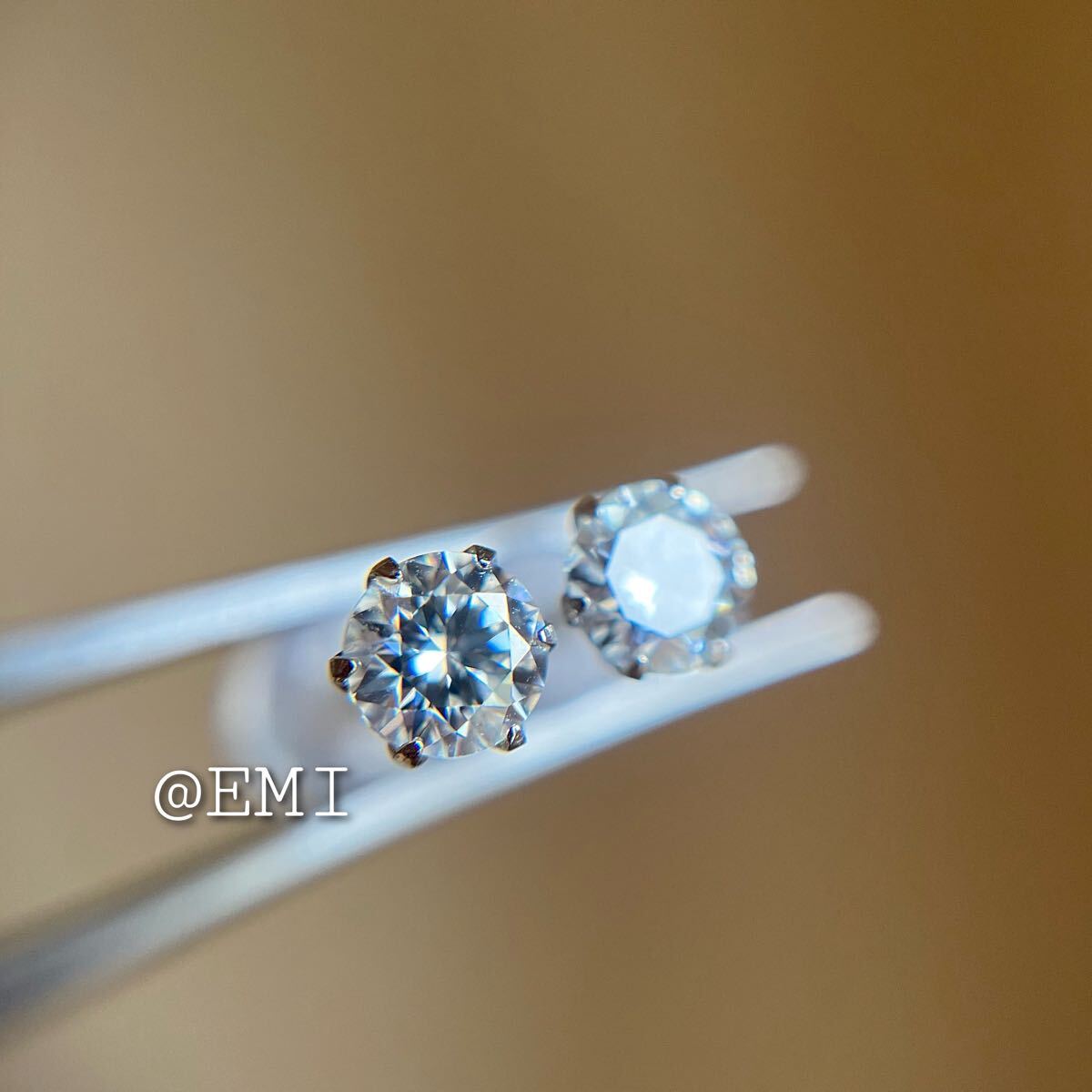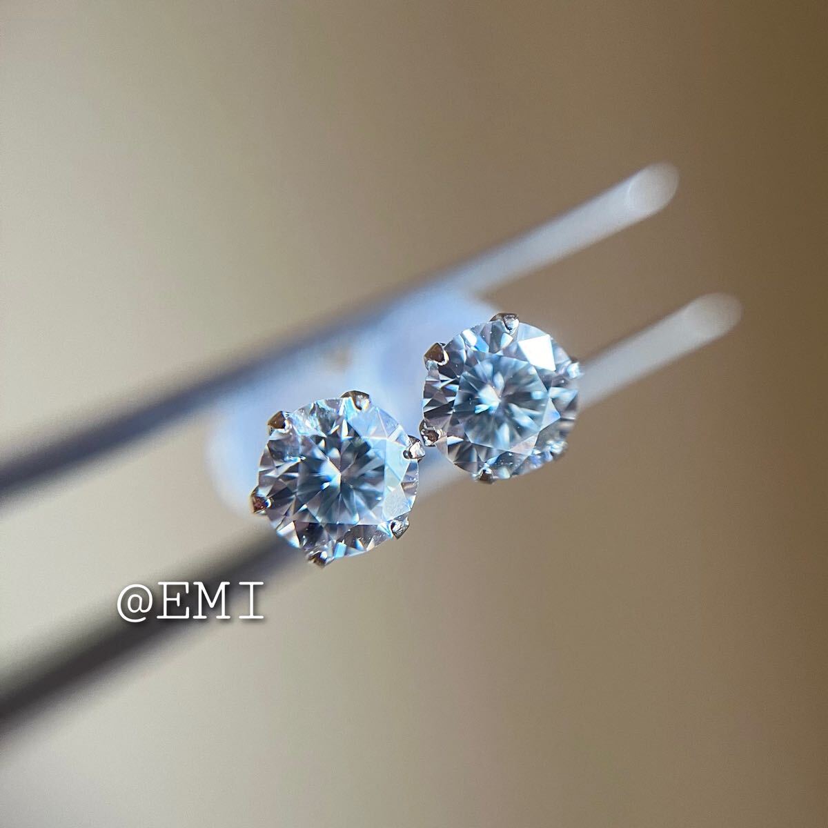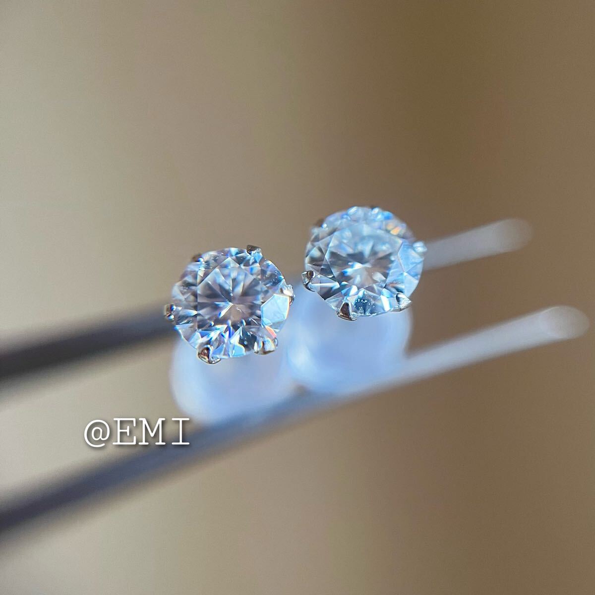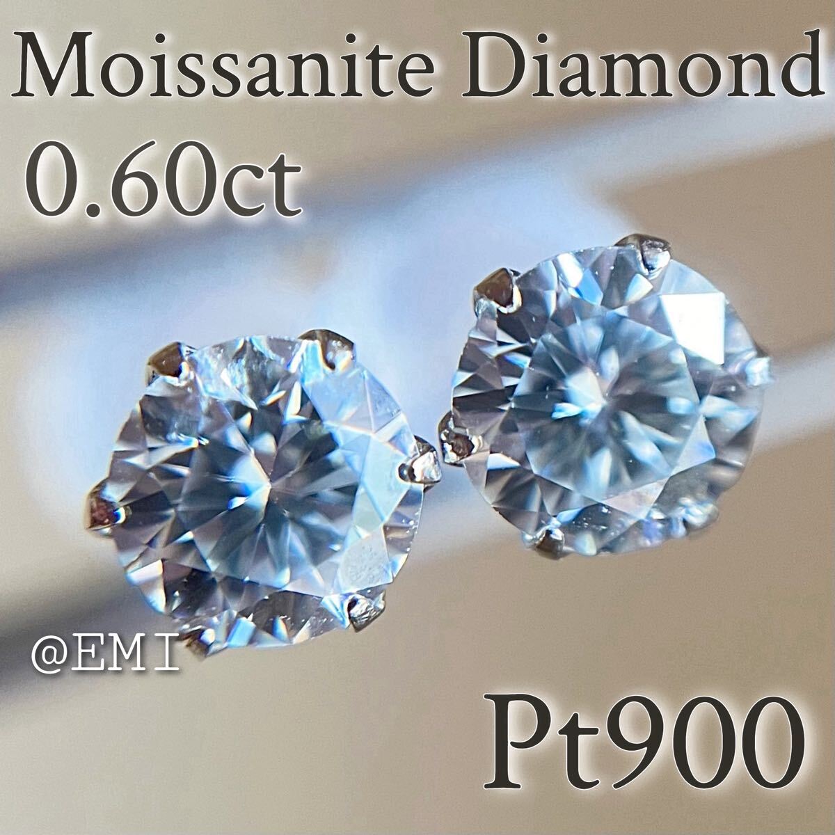 人気のモアッサナイトダイヤモンド、ラウンドカット計0.60カラットの一粒ダイヤモンドピアスです♪