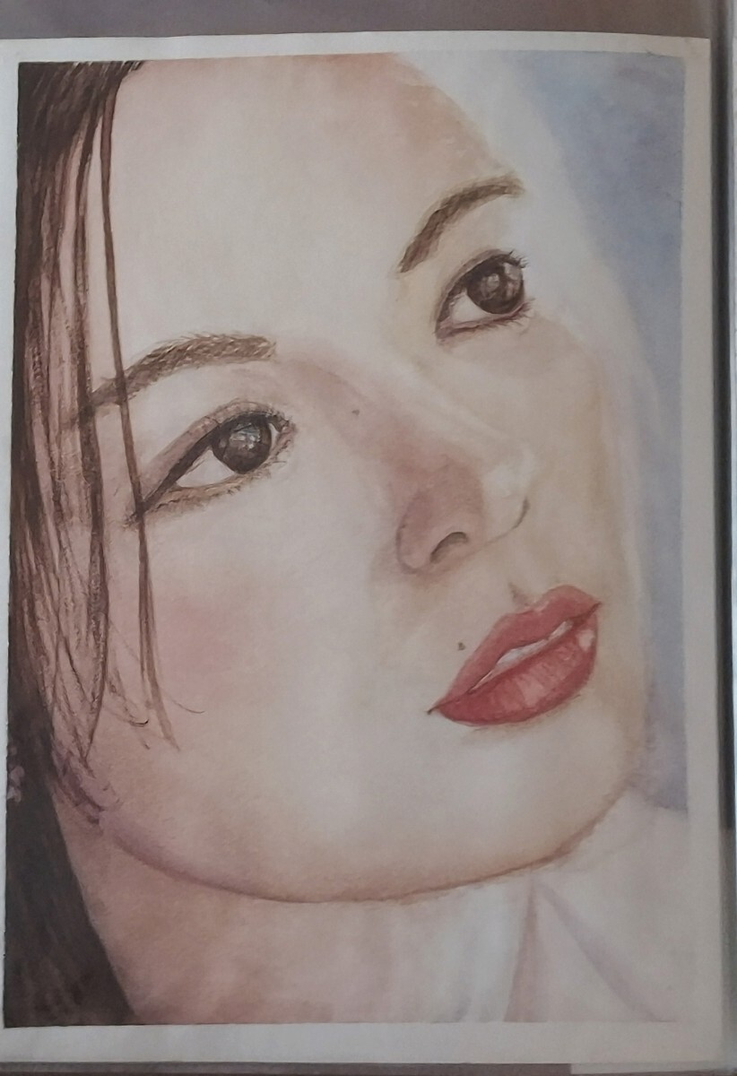 数ある中から 目をとめてもらい、ありがとうございます。此方の作品は、マルマン画用紙に水彩絵の具使用で顔アップを描きました。