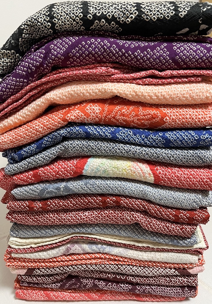 段ボール1箱分の総絞り羽織大量20点セット / すべて正絹 / 疋田絞り / アンティーク リメイク リサイクル着物