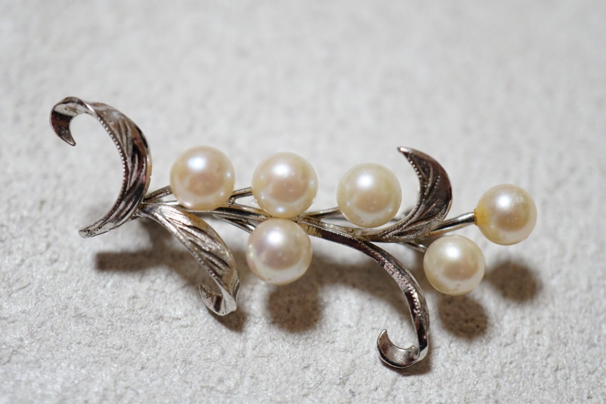 1242 アコヤ真珠 本真珠 パール シルバー ブローチ ヴィンテージ アクセサリー STERLING刻印 冠婚葬祭 あこや 装飾品