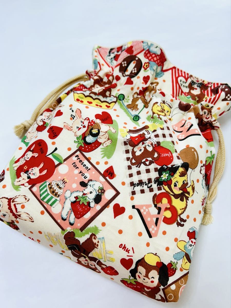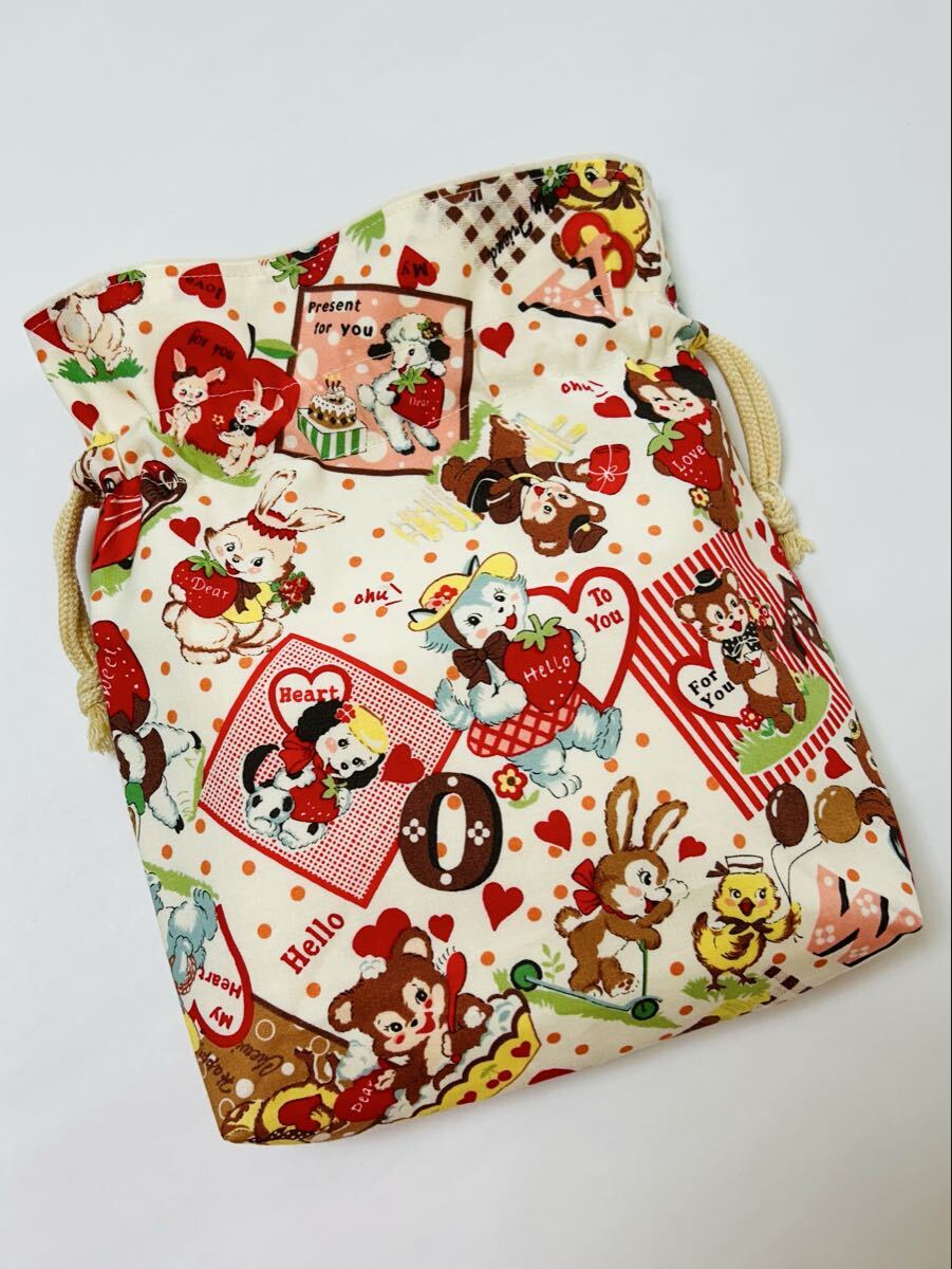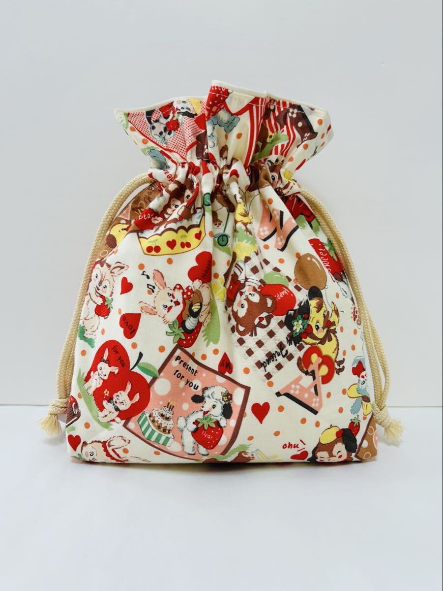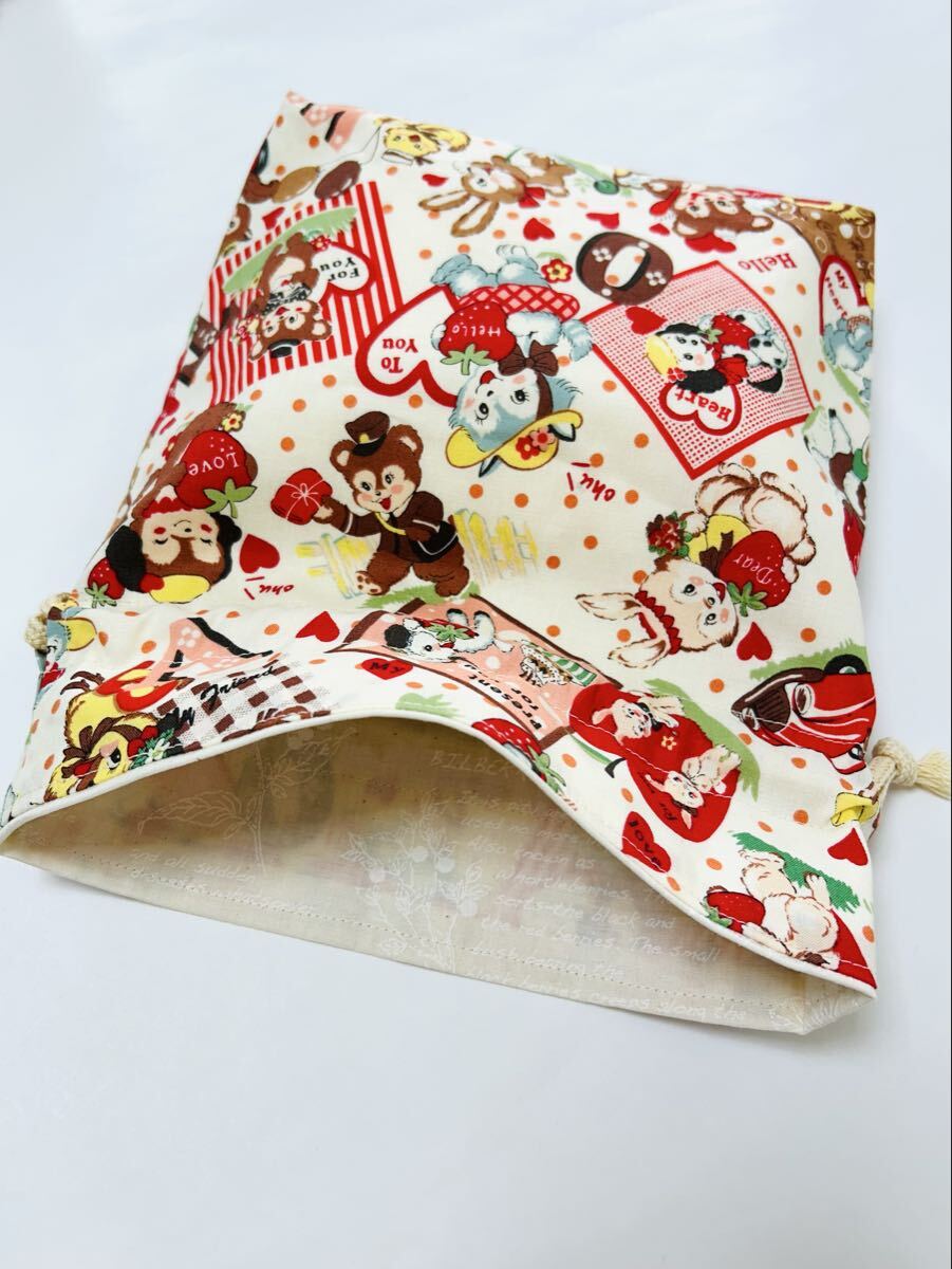 裏地を着けて、しっかりめの巾着袋をお作りしました♪