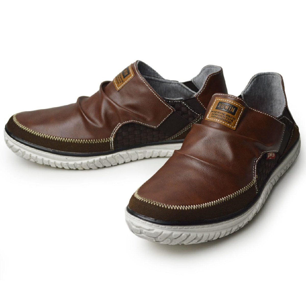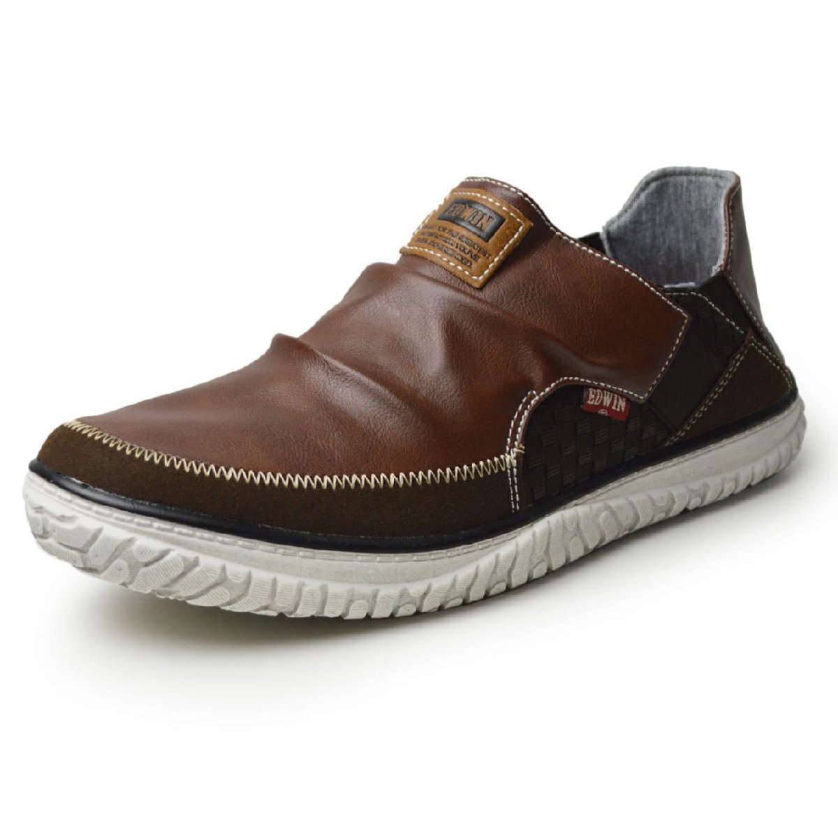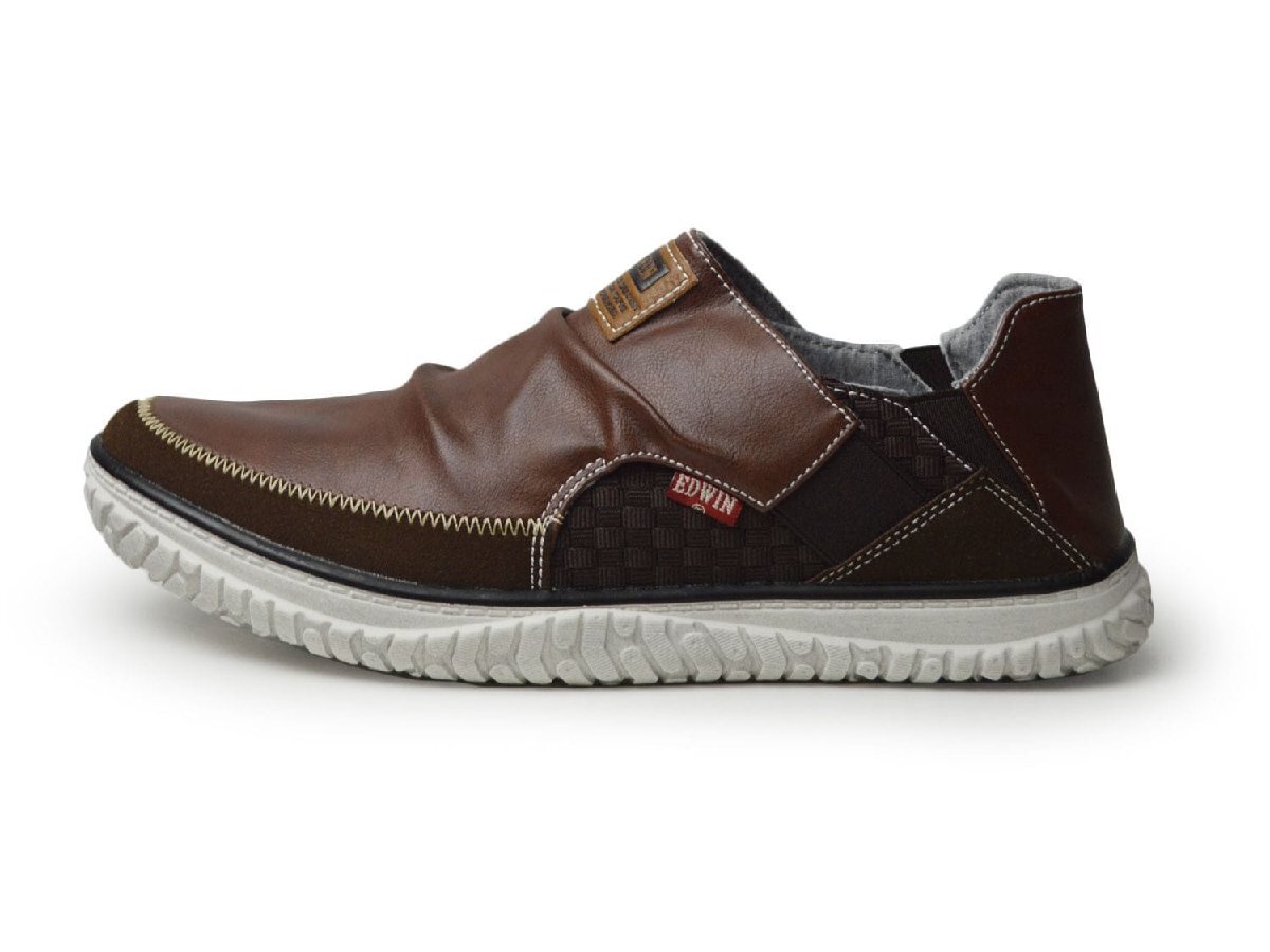 新品■25.5cm EDWIN エドウィン スリッポン メンズ スニーカー 軽量 2way カジュアル 防滑 幅広 3E EEE ローカット サイドゴア【エコ配送】