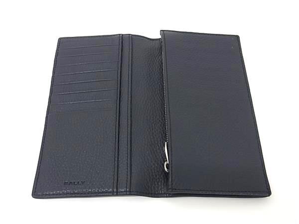 1円 ■美品■ BALLY バリー レザー 二つ折り 長財布 ウォレット 小銭入れ 札入れ カード入れ メンズ ネイビー系 FU2368