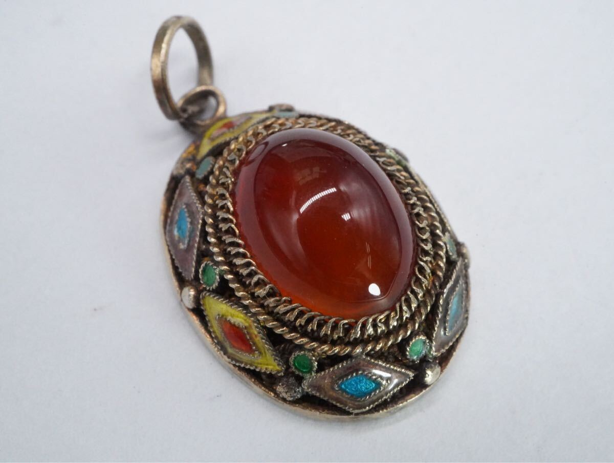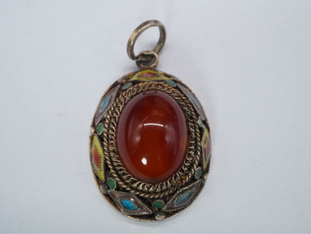 【80】銀線細工 SILVER シルバー 瑪瑙 ペンダントトップ ネックレストップ アクセサリー TIA
