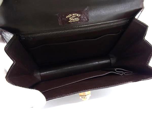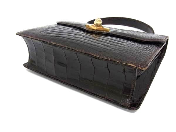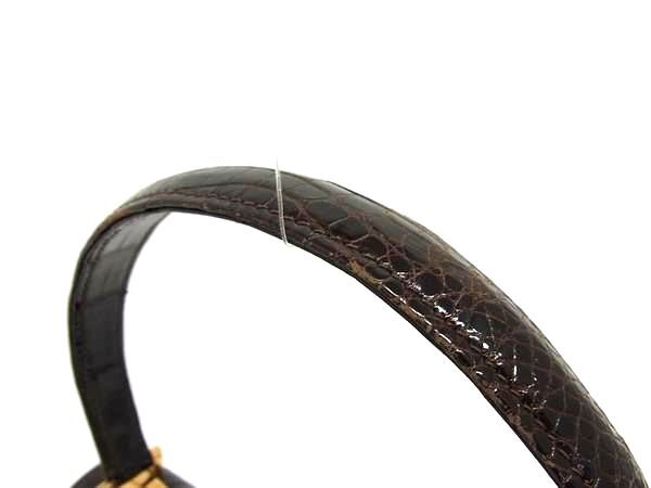 1円 ■極上■本物■美品■ GUCCI グッチ オールドグッチ ヴィンテージ クロコダイル ターンロック ハンドバッグ ダークブラウン系 FE9753