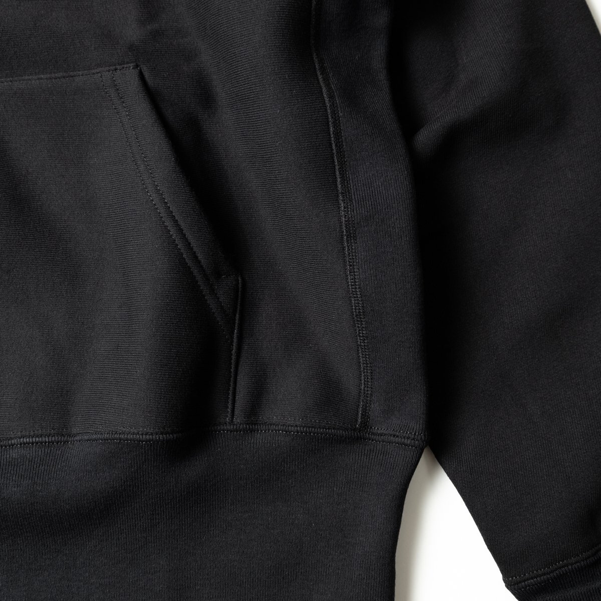 サイドパネルを施すことで縮みを抑制した、ヘビーウエイトパーカー。