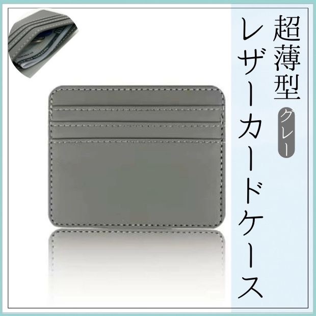 名刺 名刺入れ カード収納 ミニ財布 コンパクト 薄型PUレザー 小銭入 グレー